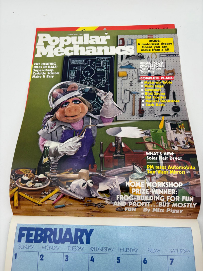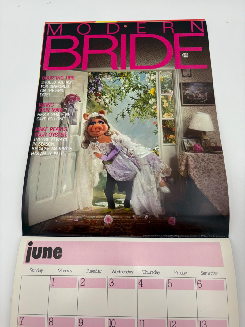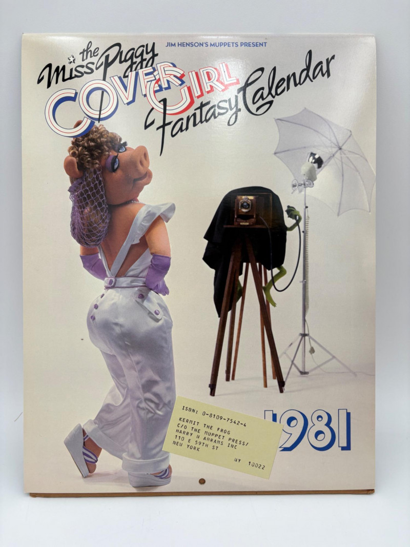 1981 Cover Girl wall calendar featuring Miss Piggy of Muppets fame. Truly useable since 2026 is the same calendar days of week as 1981! Calendar is in great condition with no writing or noticeable flaws (cover envelope shows a bit of storage wear). Even features our star in a centerfold lounging in her bath. Hang her across from Kermit and they can make time together....