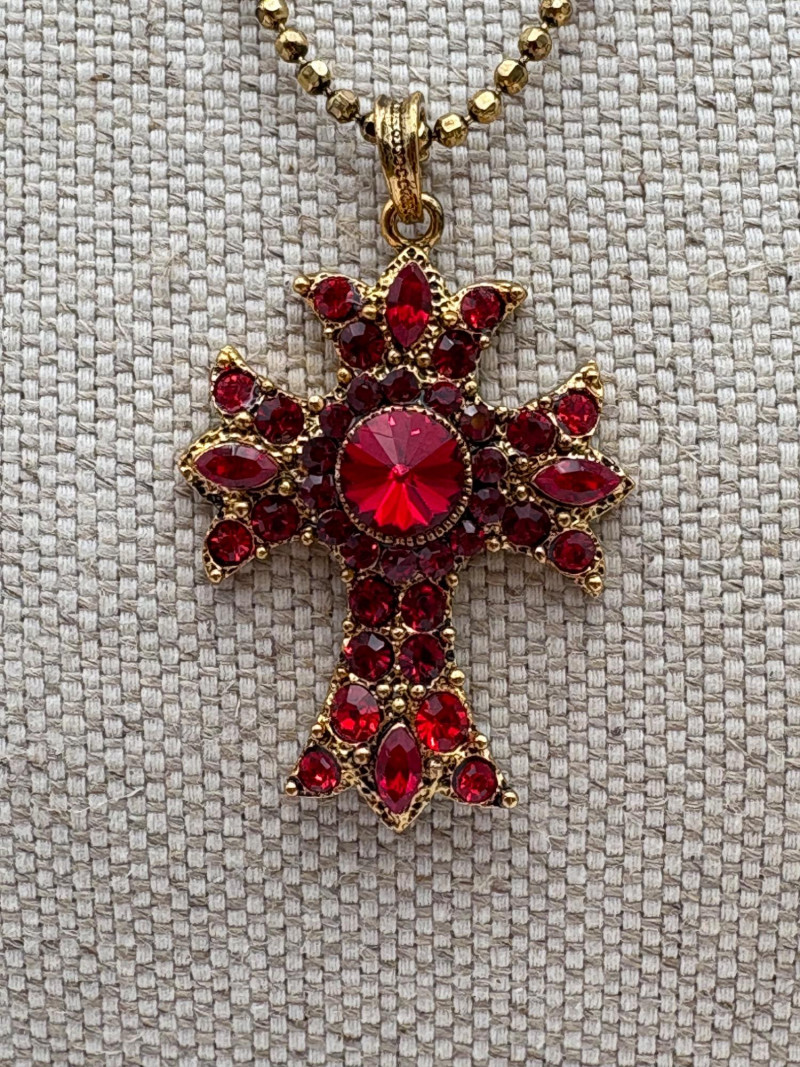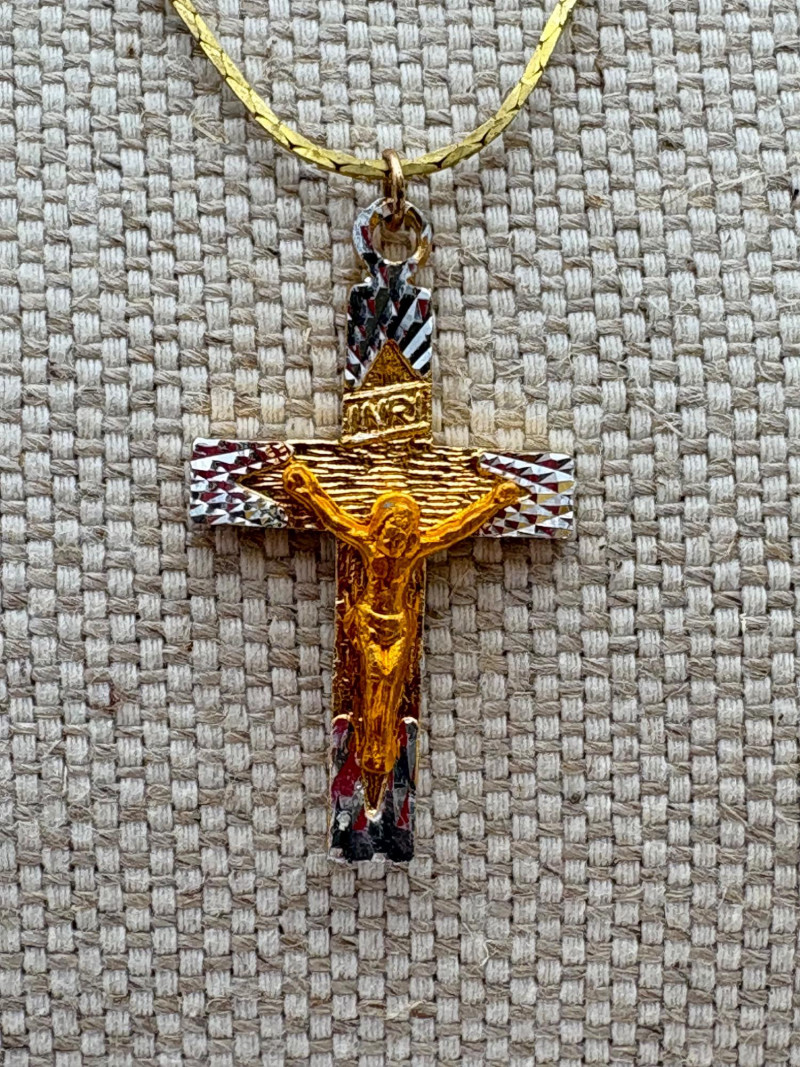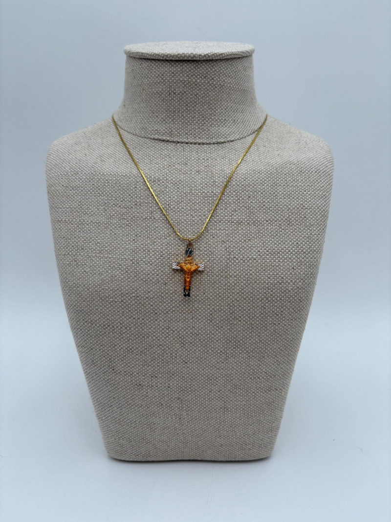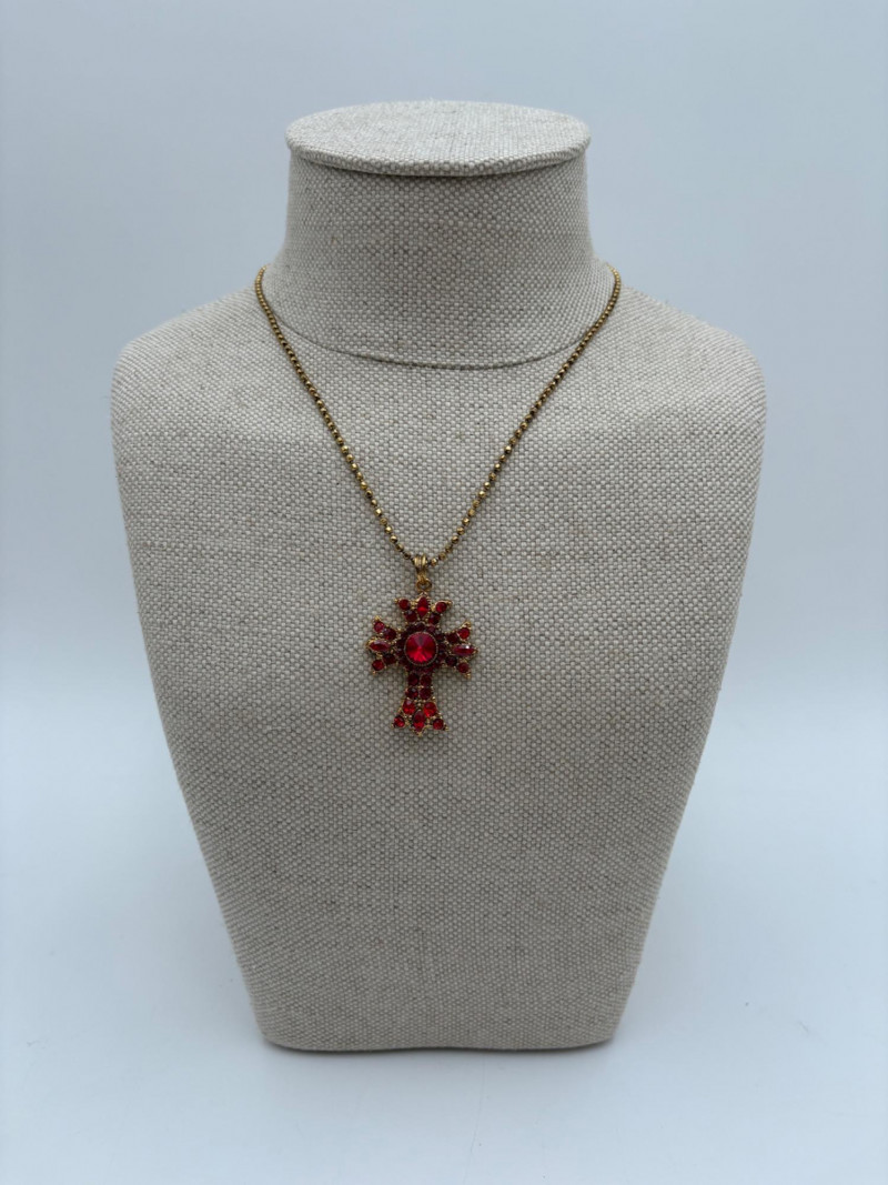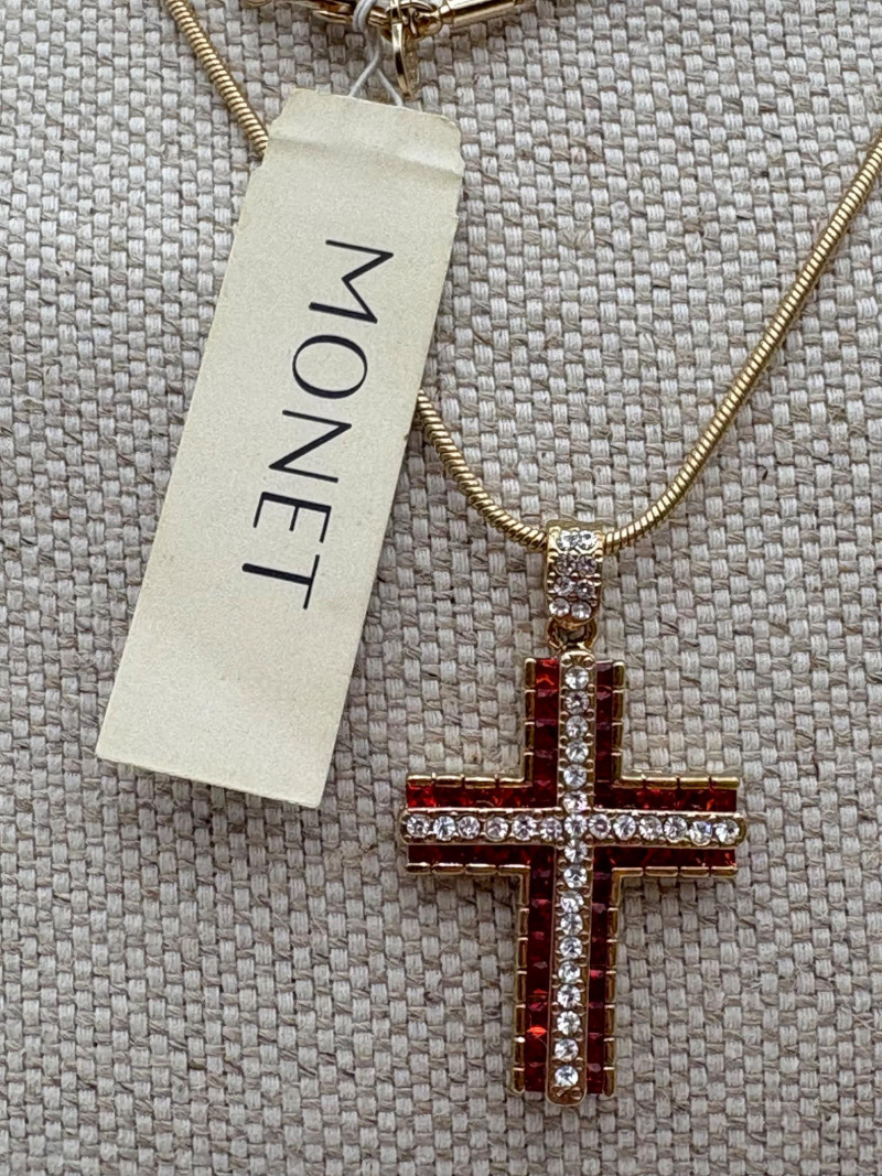 9 assorted religious (Christian) necklaces of varying lengths (Note that the last necklace - Monet - is much longer than the rest - the lead photo was taken with some of the chain behind the stand). Please look at photos - what you see is what you get.