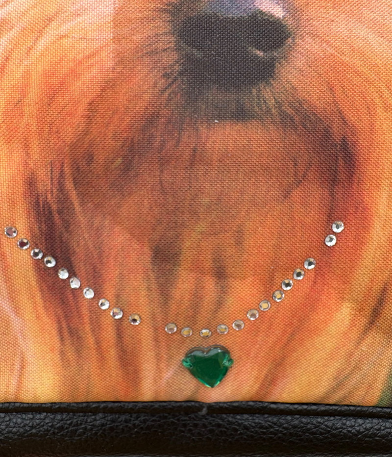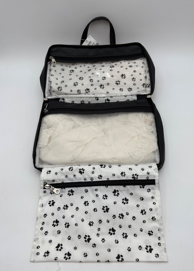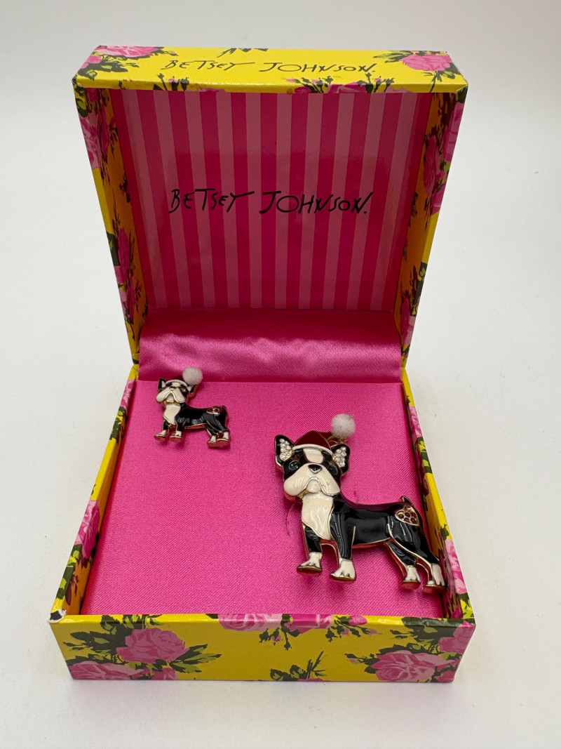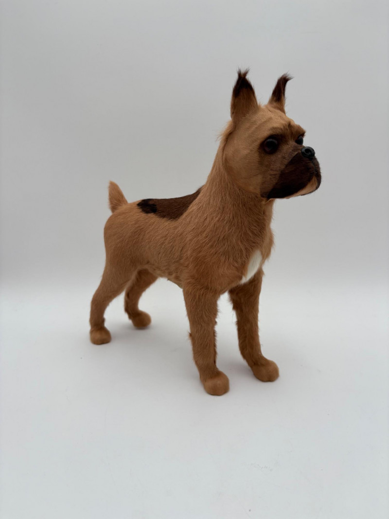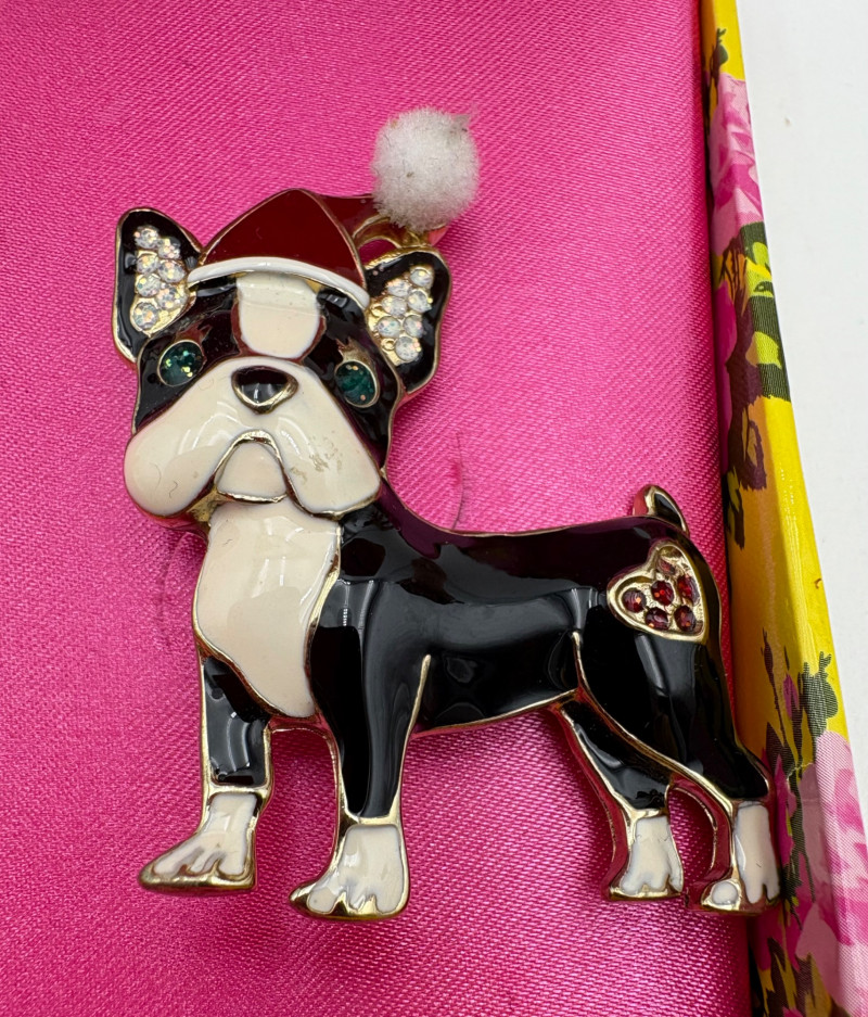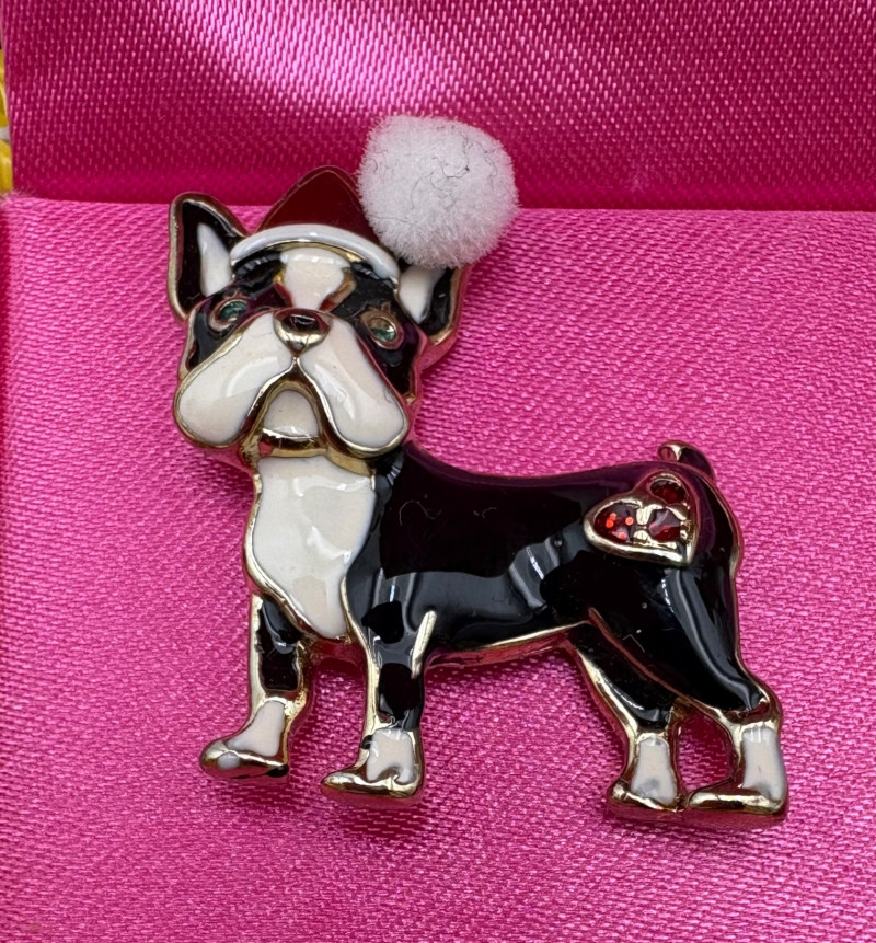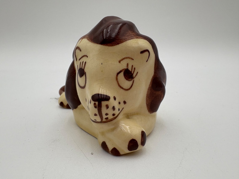 All things dog - vintage and not! - Barking dog clock - a different bark for each hour. We are not sure who wants to wake up to a barking dog, but different strokes for different folks. The clock is new & unused (still attached to its cardboard package) and when we inserted 3 AA batteries it does make barking sounds. Measures approx. 8" W. - Large boxer dog figure whose fur feels real & is super soft. Measures approx. 12" H. - Vintage cream & brown ceramic dog. Measures approx. 3" H. - Dog cosmetic bag. New & unused, but a couple of "sparkles" on one side at the collar missing (see last photo.) measures approx. 8" H x 12" W. - Clear glass dog figure measures approx. 3.5' H. - Cast resin Pomeranian figure measures approx. 4" H. Appears to be new. - Large vintage ceramic Dachshund named "Max" with Pierce Country license tag from 1971. Measures approx. 8" H x 11" L. - 3 dog accessories - a set of Christmas Boxer pins from Betsey Johnson, a plastic dog keychain, and a stretch Christmas dog bracelet.