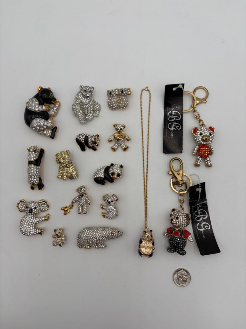 Lot # 73 - Batch of Bears -Vintage & Not - Sparkly Costume Jewelry