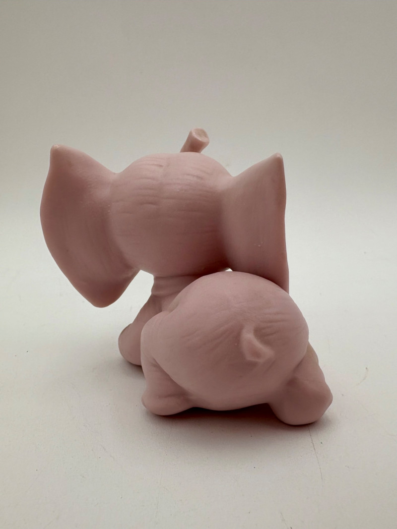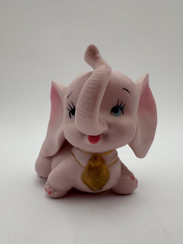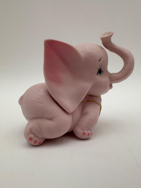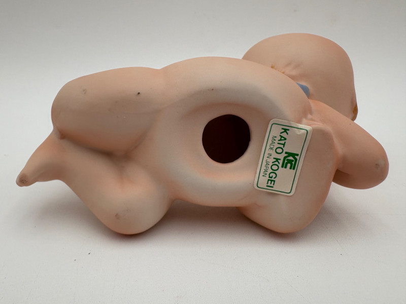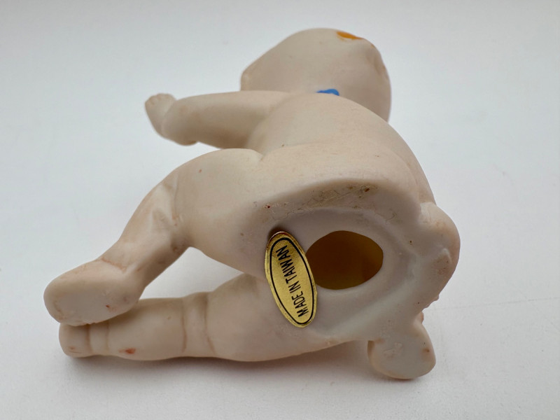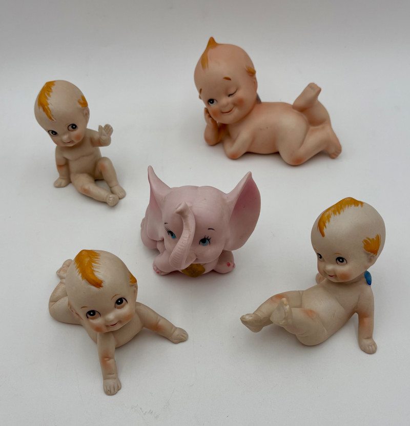 4 vintage Kewpie figures in bisque clay - in terrific condition! They are joined by an elephant friend in the same style. Largest piece - right rear in lead photo - measures 3" H x 5" L. Made in Taiwan and Japan. See photos for details.