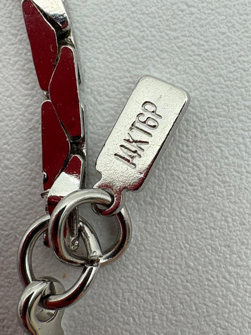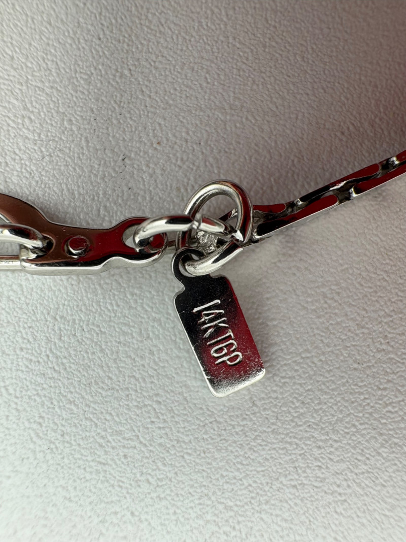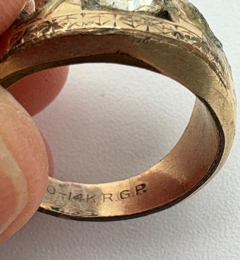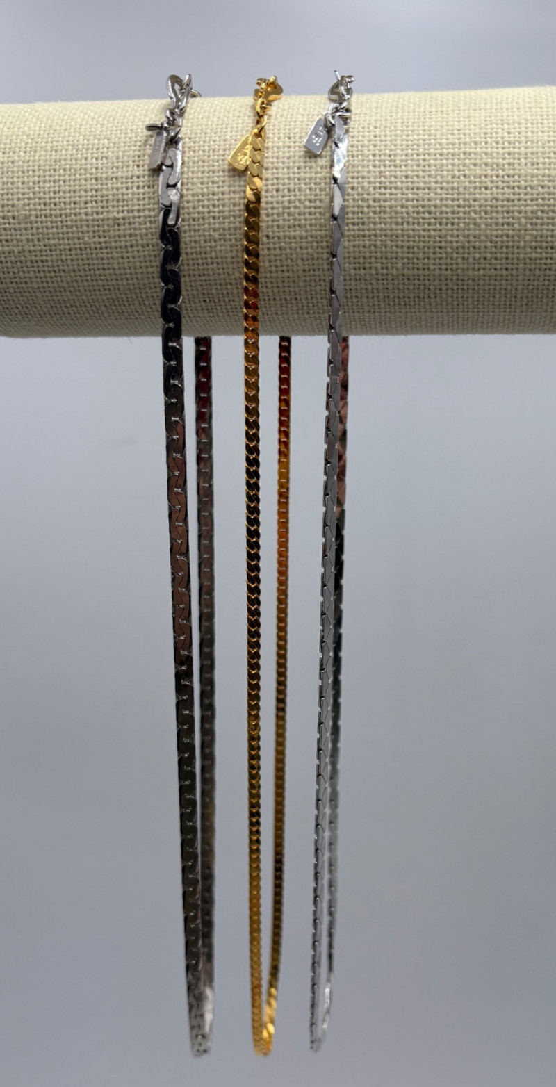 3 rings and 3 chains marked "14 K GP". The chains all measure 16' end to end and have slightly different patterns to the link. Please look closely at the photos for details.