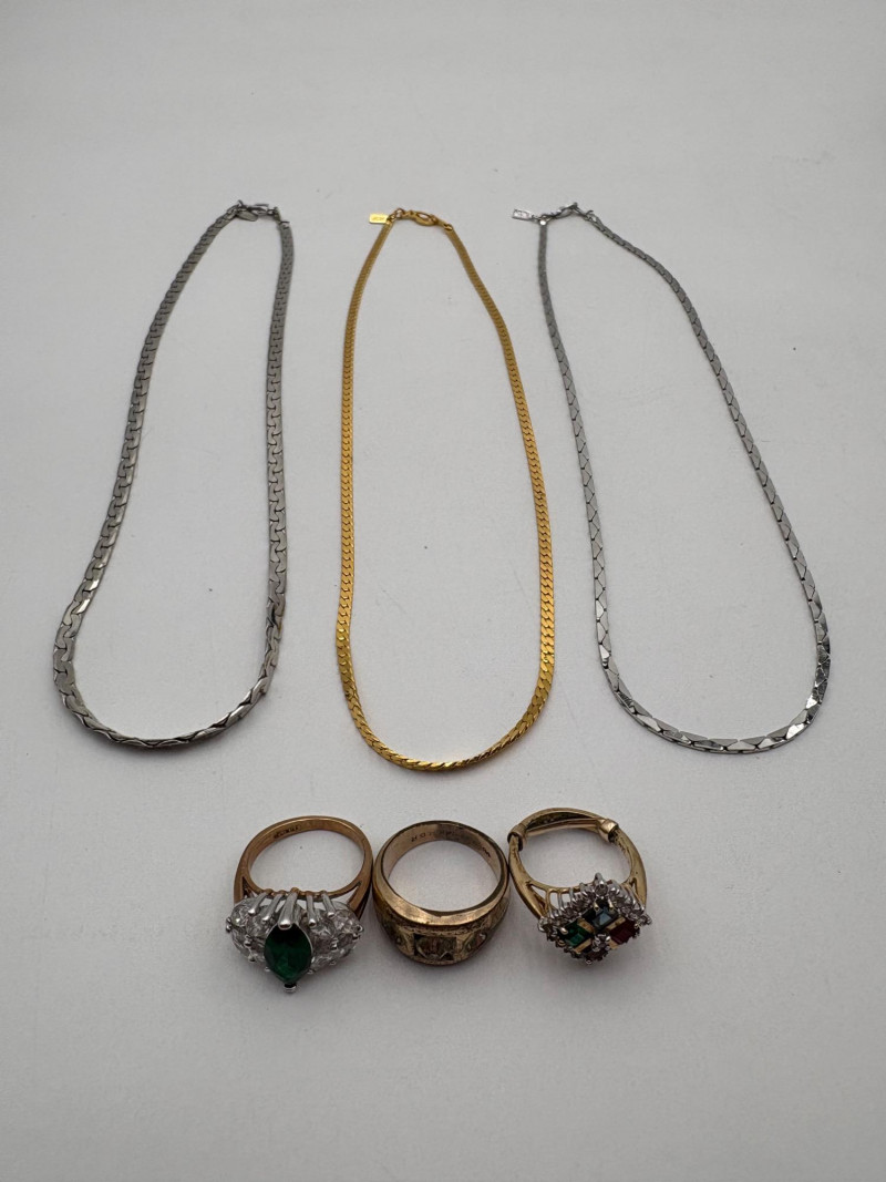 Lot # 94 - 3 Chains/3 Rings - Gold Plated - Pretty