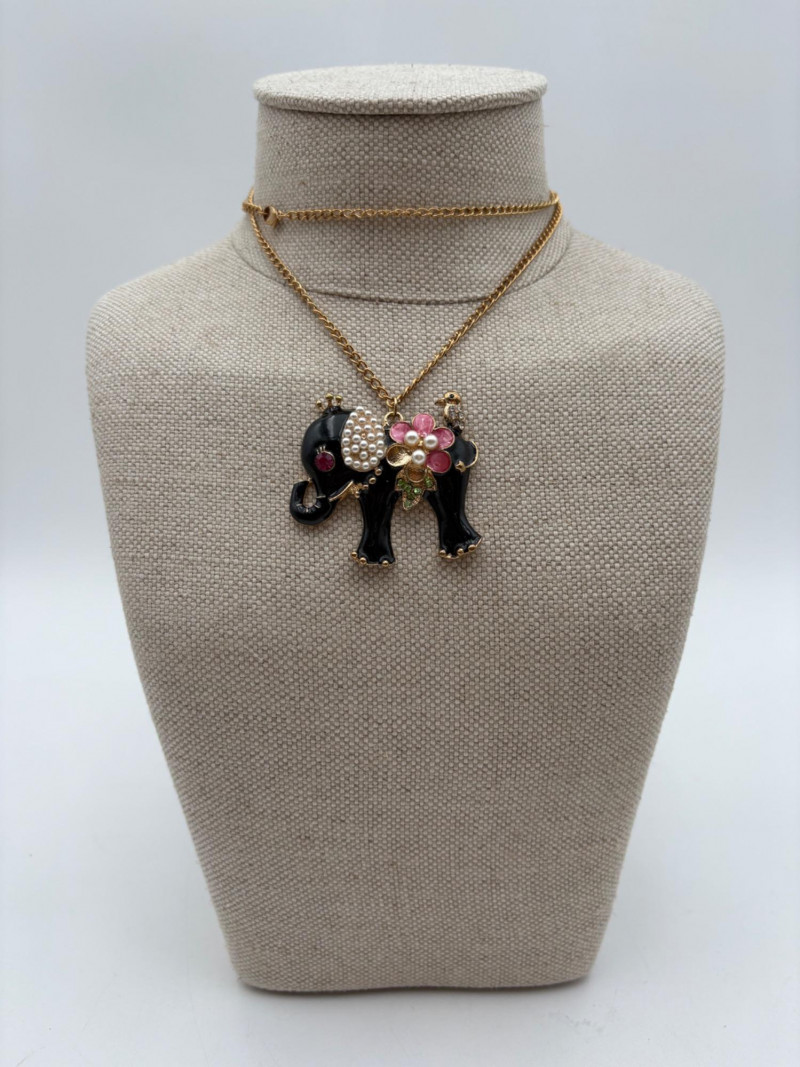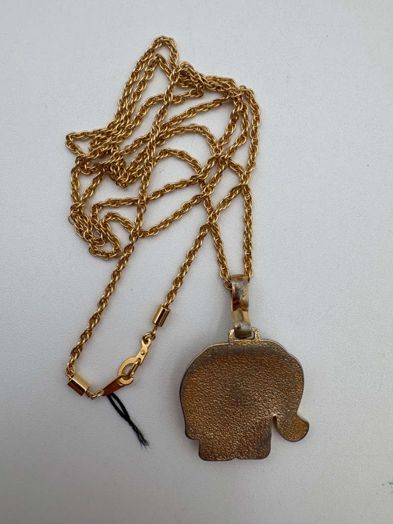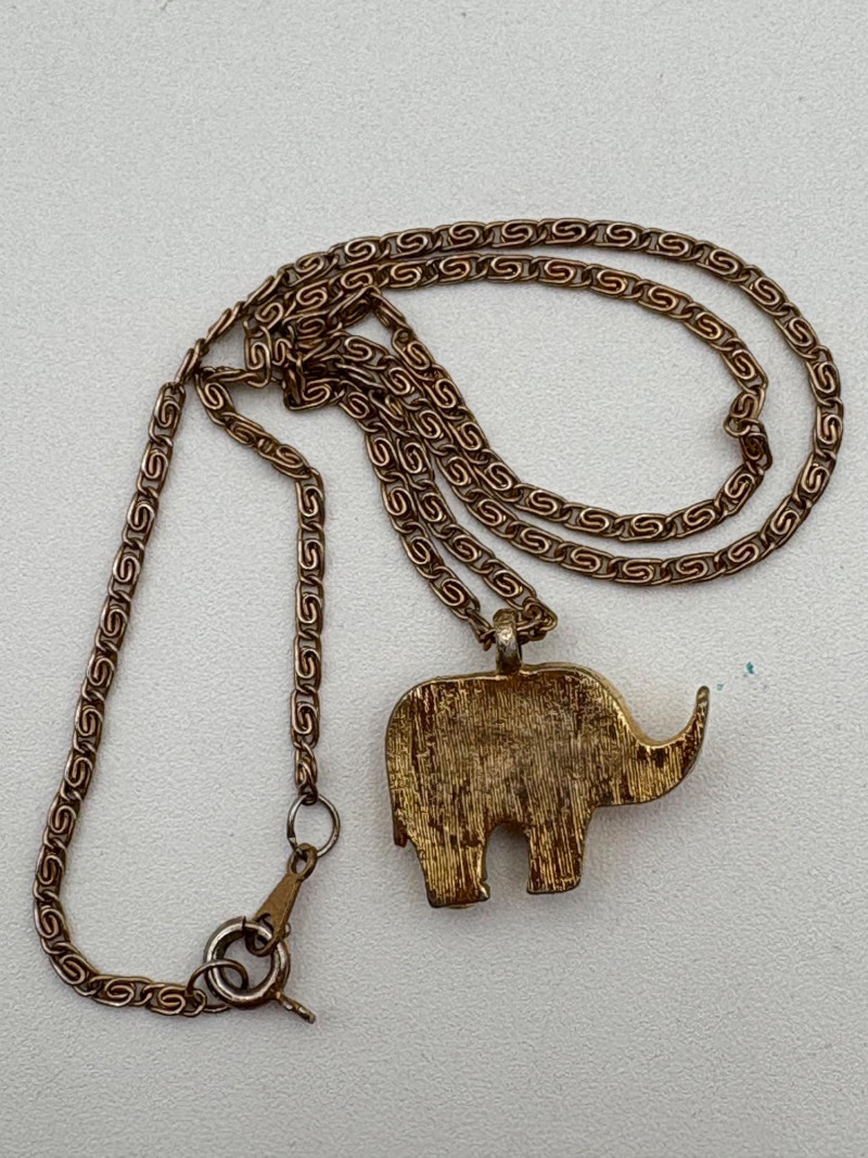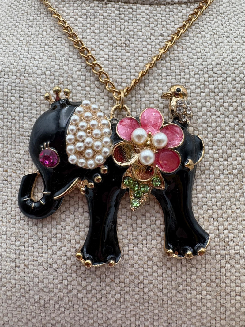 Lot of 15 elephant-themed necklaces and 15 pins - some are vintage (how long since you shopped at Lamont's???) and some are not. Please look at photos for details.
