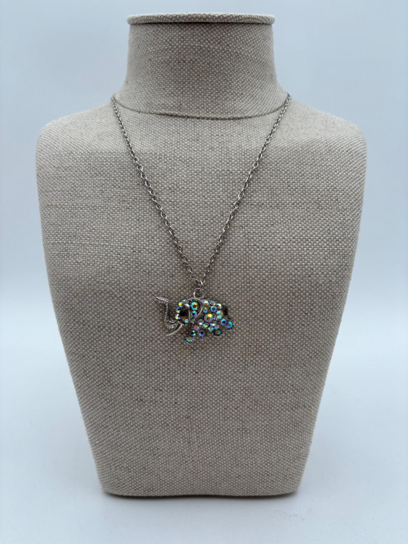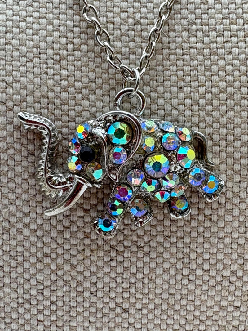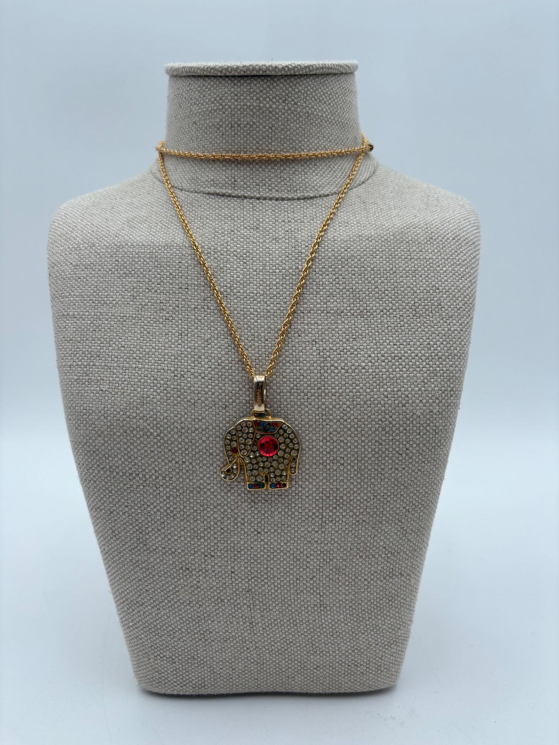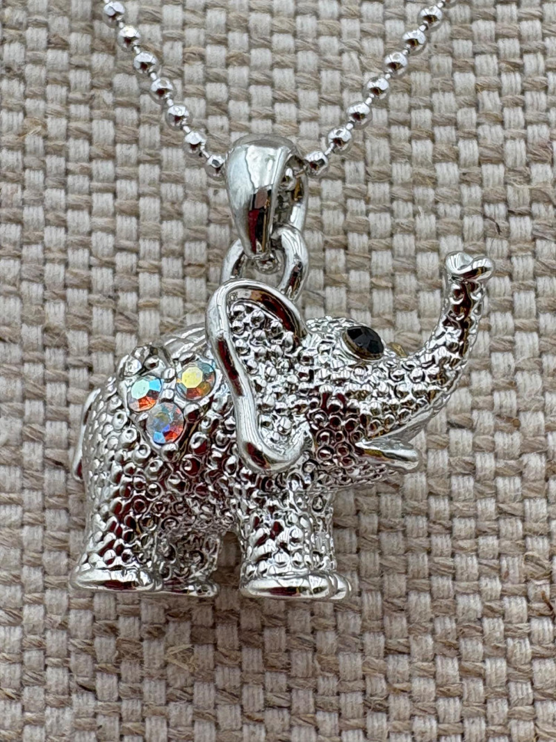 Lot of 15 elephant-themed necklaces and 15 pins - some are vintage (how long since you shopped at Lamont's???) and some are not. Please look at photos for details.