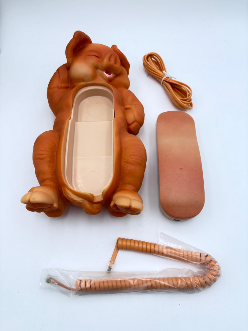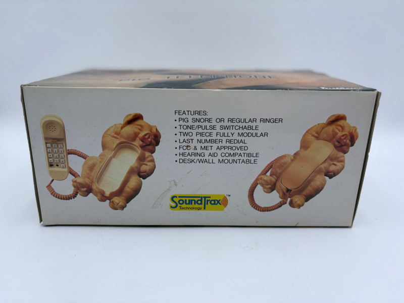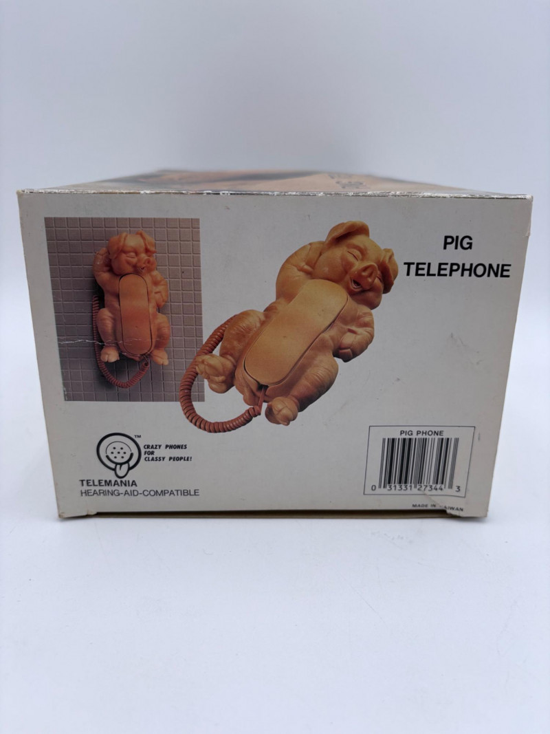 We've been told that landlines are making a comeback - particularly amongst some Gen Z folks who don't like being tracked by an iphone. If this is true, we have some finds for you hipsters out there! Take a look at these two landline phones: Pig phone from Telemania can be wall or desktop phone - the plastic pig reclines and the headphone is his belly. The pushbutton deck is on the inside of his belly. Ringer is a pig snort. Appears to be new given the packaging and the sealed instruction booklet despite the box showing wear from storage. Box seal was open so we took it out to photograph & repacked. Measures approx. 11" L x 7" W. Alvin (from Alvin & The Chipmunks fame) phone from Carlton Company made of brightly colored plastic in 1984. The pushbutton phone deck is under the yellow "A" on Alvin's front. While the phone appears to be in terrific cosmetic shape, we don't think it's new as there was no plastic sack inside the box (only the Styrofoam braces) and the instruction booklet wasn't in a plastic envelope. There is also some fading on the "A" of Alvin's sweater, so we are guessing it may have been used a bit. The phone is fairly large measuring approx. 15" H. Please note that we were unable to test either phone as we got rid of our landline 2 years ago - guess we truly out of the "cool" loop... Landline Phones Are Back. Here's Why
