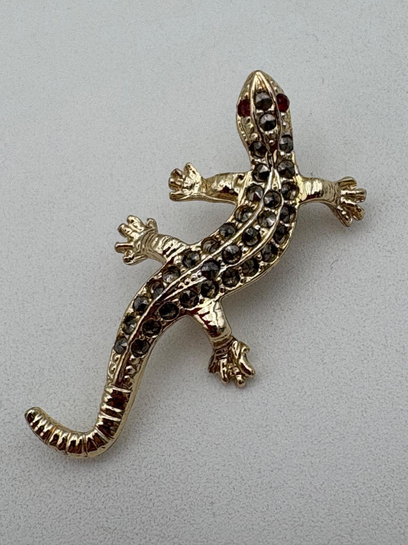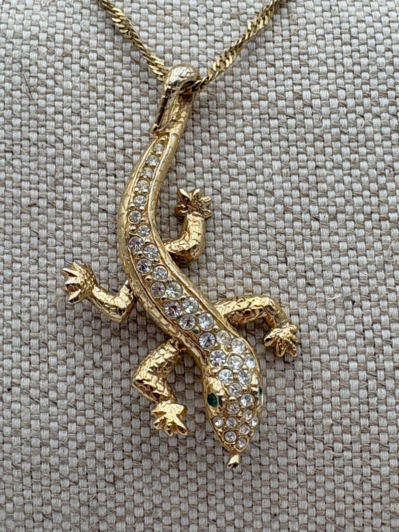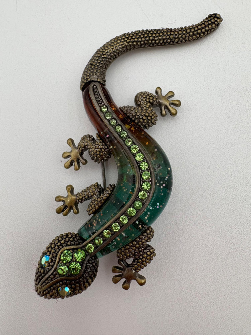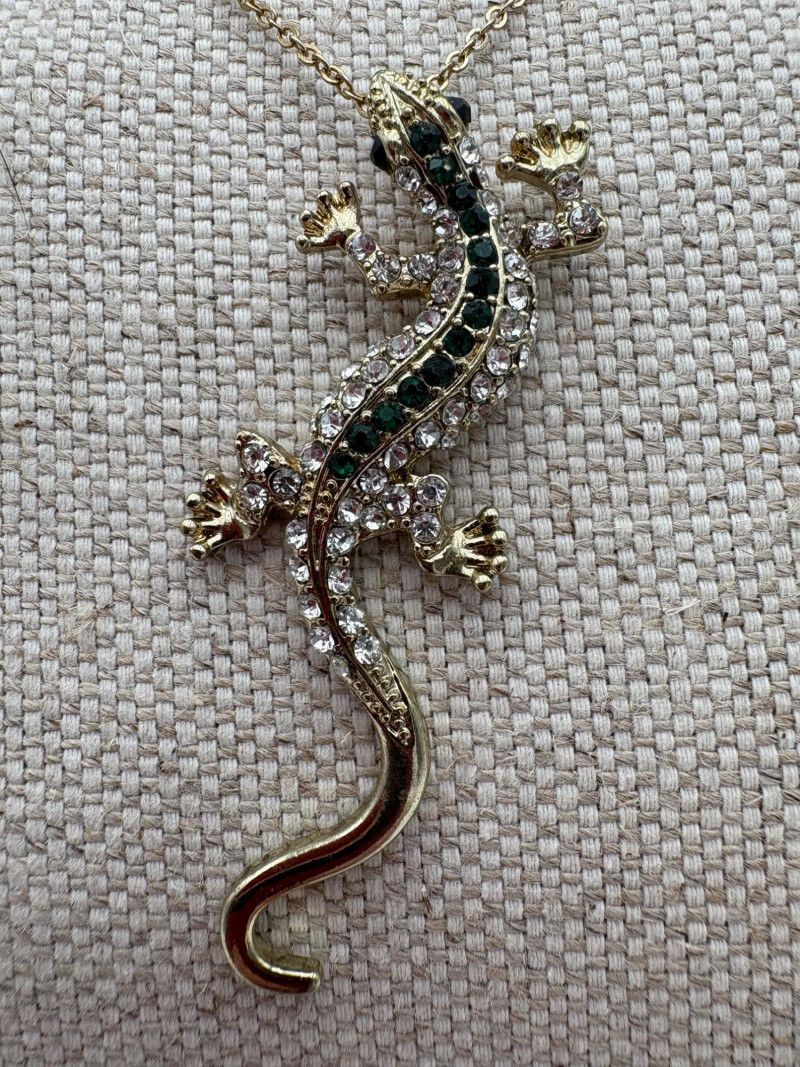 Great mix of 12 sparkly lizard pins, necklaces, and a ring. Some are vintage, some are not - please see photos for details. Smallest lizard measures 1.5" L while the largest measures 6" L.