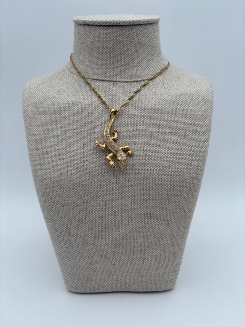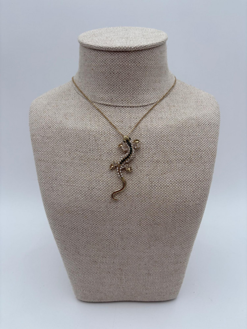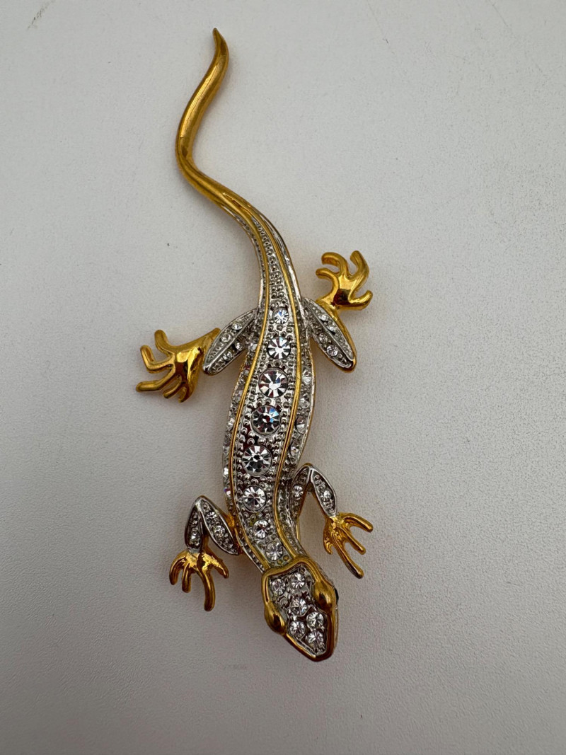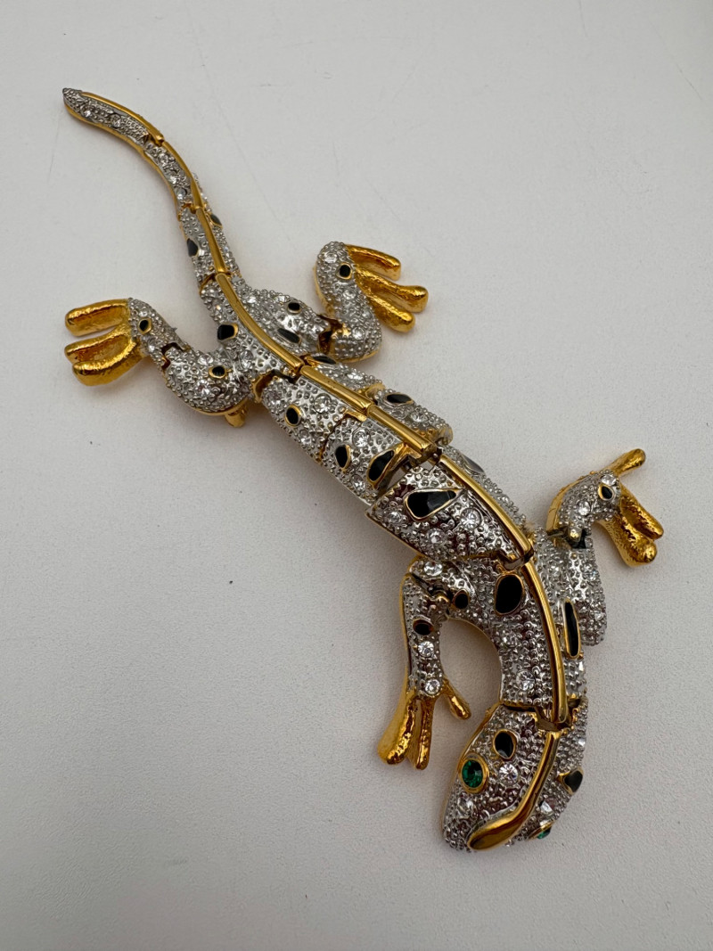 Great mix of 12 sparkly lizard pins, necklaces, and a ring. Some are vintage, some are not - please see photos for details. Smallest lizard measures 1.5" L while the largest measures 6" L.