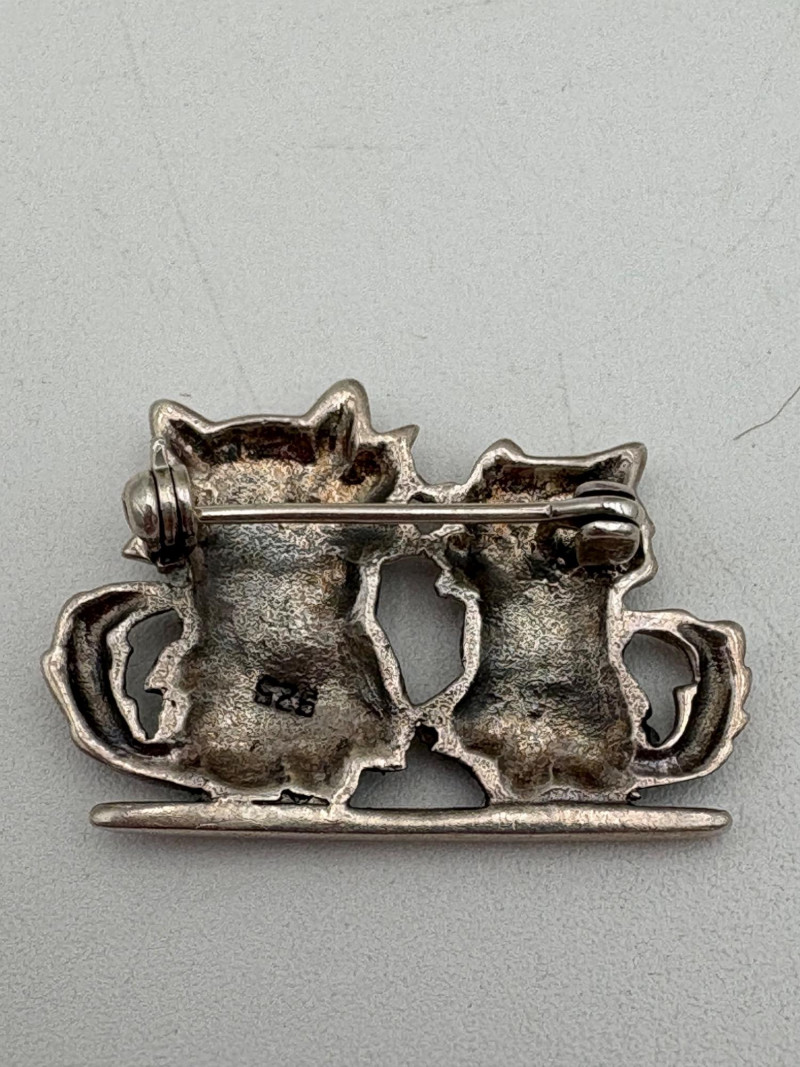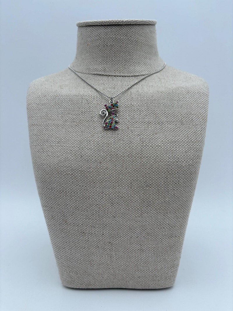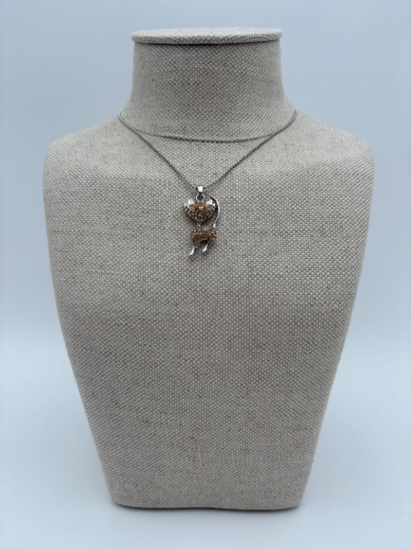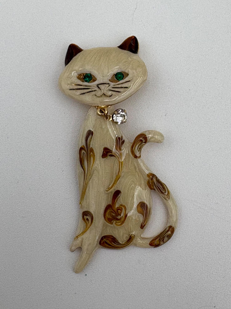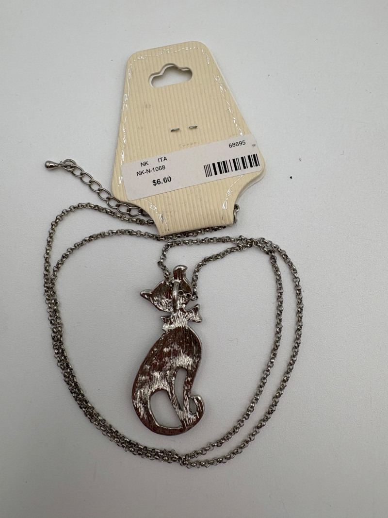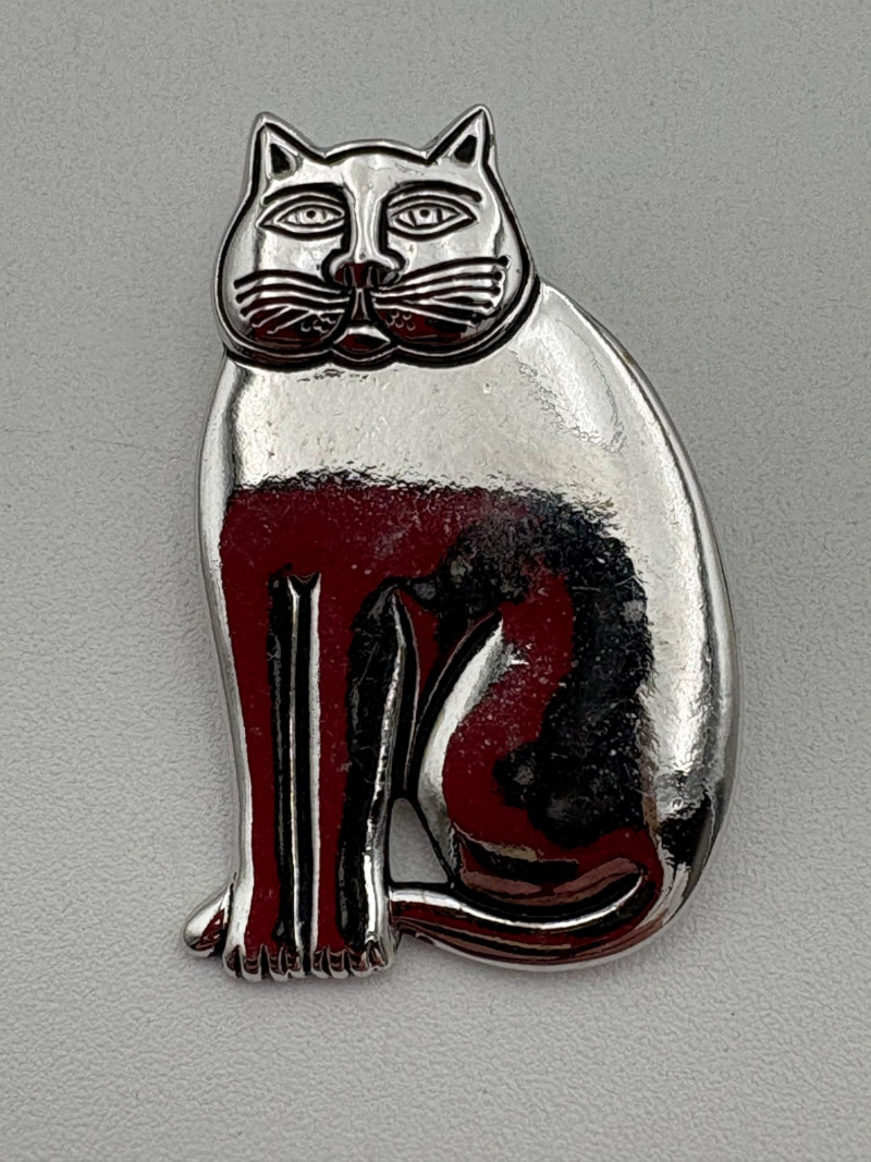Great mix of 25 different cat-themed pieces of costume jewelry - 5 necklaces and 20 pins. Some are vintage while some are not - please see photos for details. Smallest measures 1" H while largest measures. 3" H.