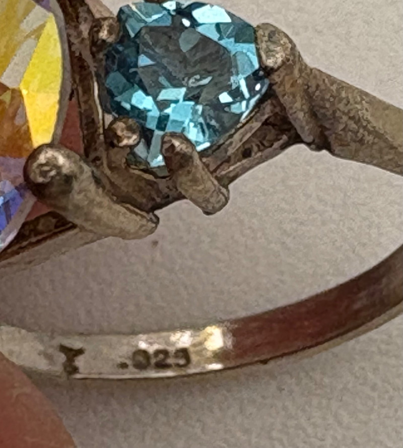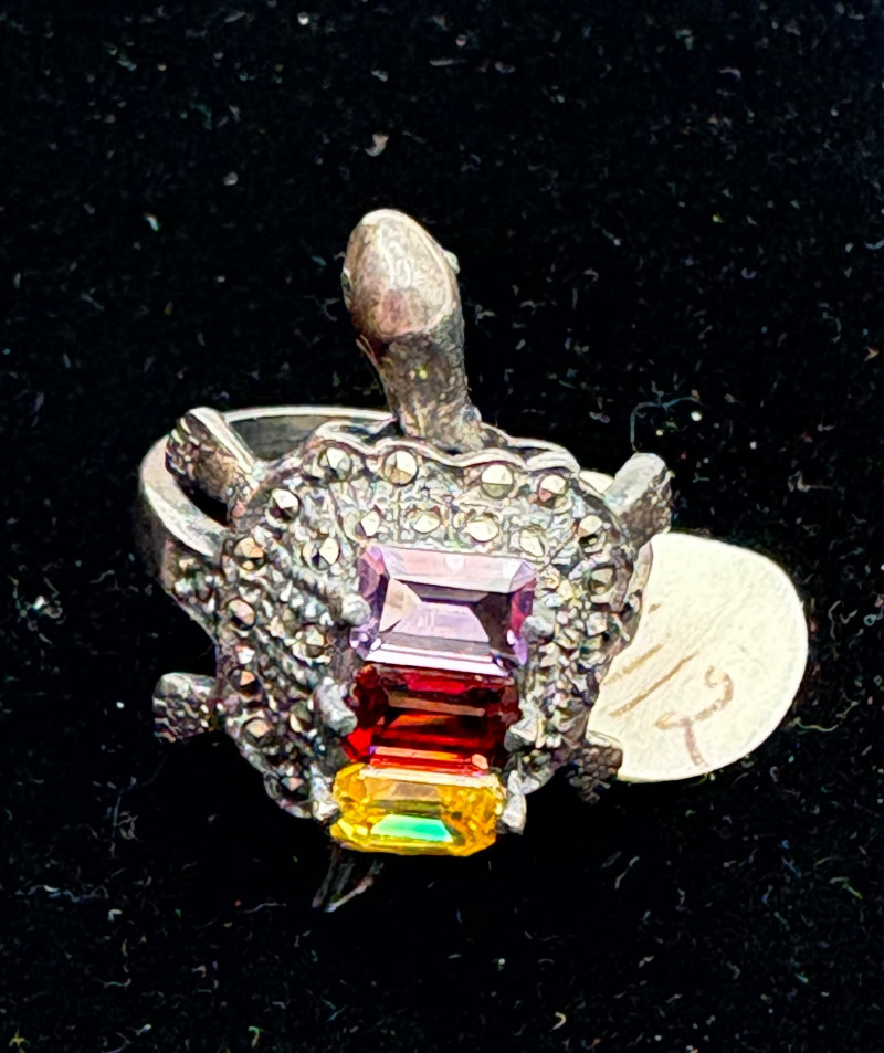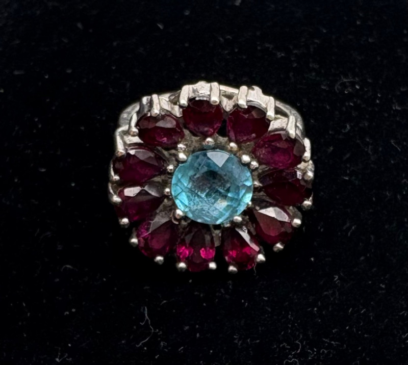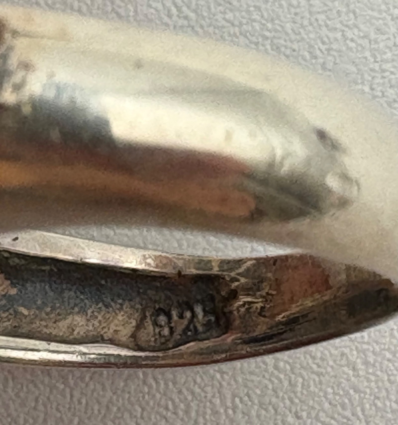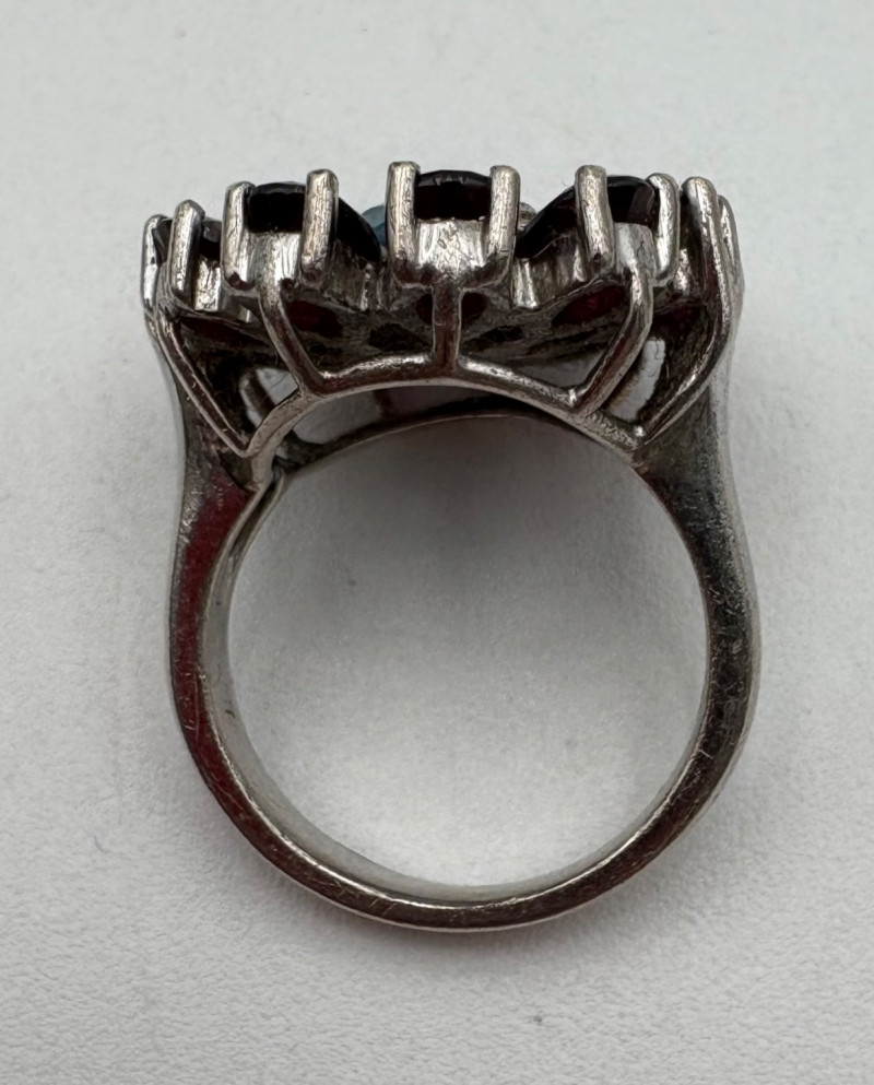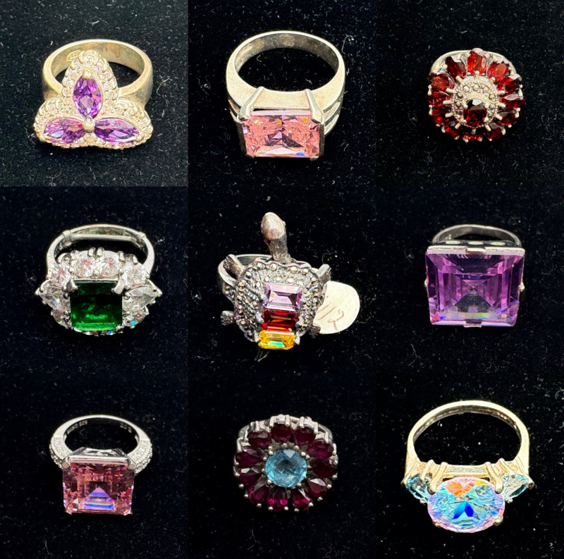 Nine sterling silver rings - all are marked 925 or sterling. We can't vouch for the authenticity of the stones, however! Please look closely at photos for details.