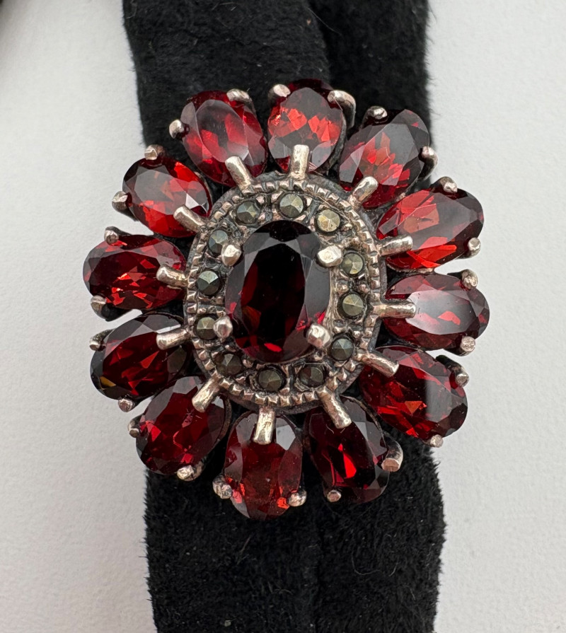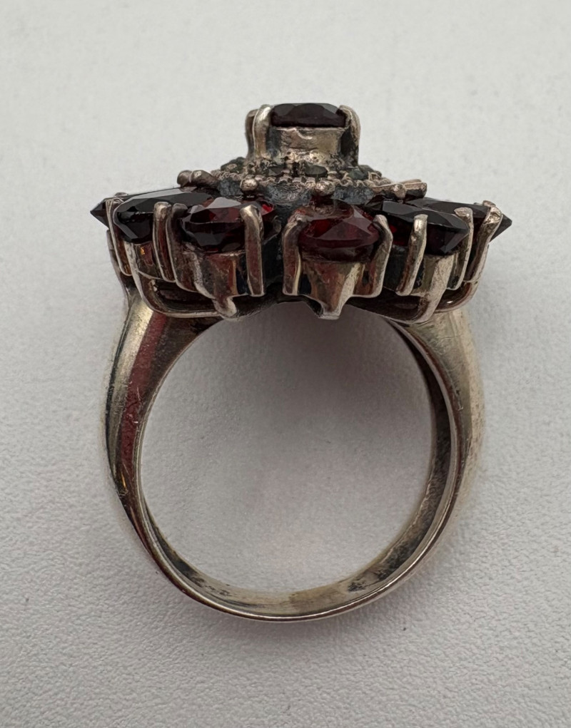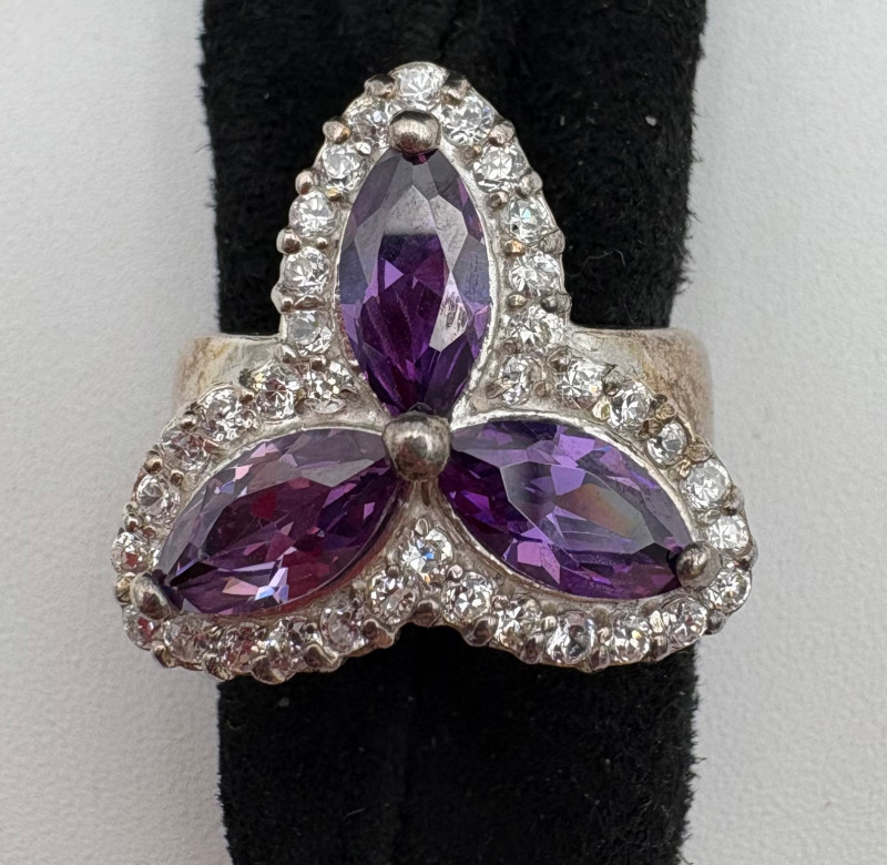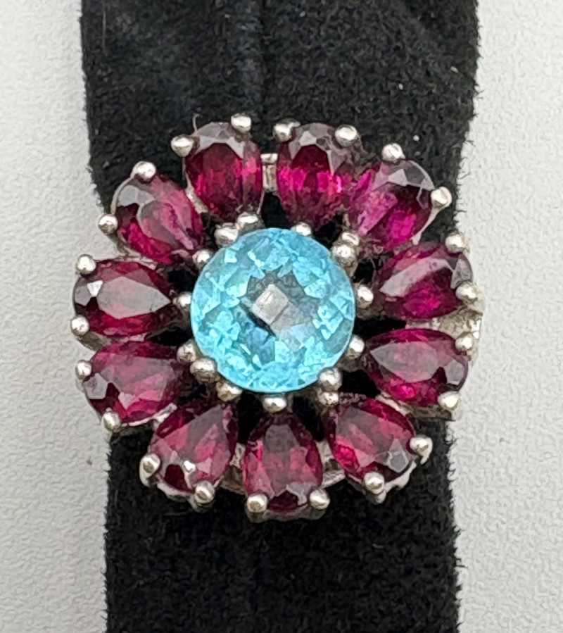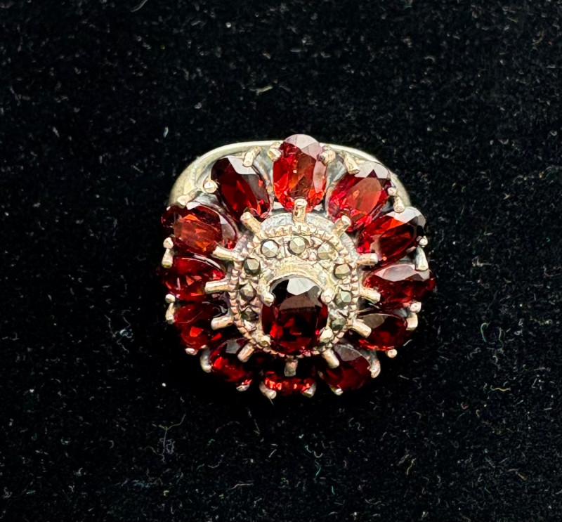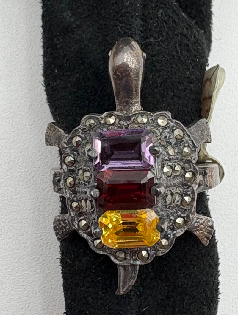 Nine sterling silver rings - all are marked 925 or sterling. We can't vouch for the authenticity of the stones, however! Please look closely at photos for details.
