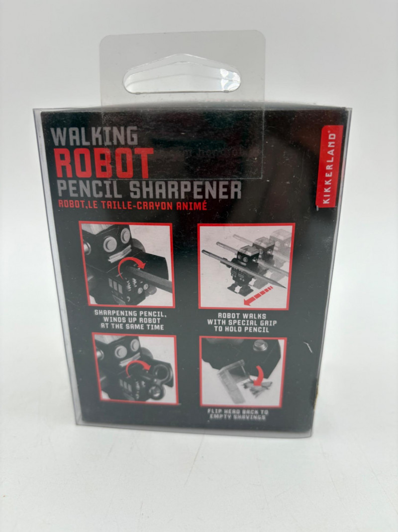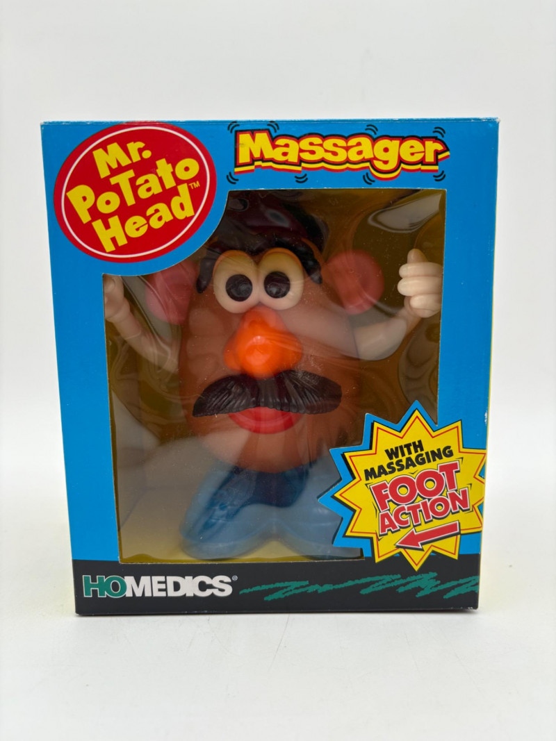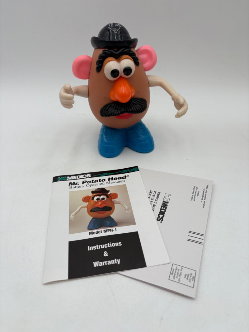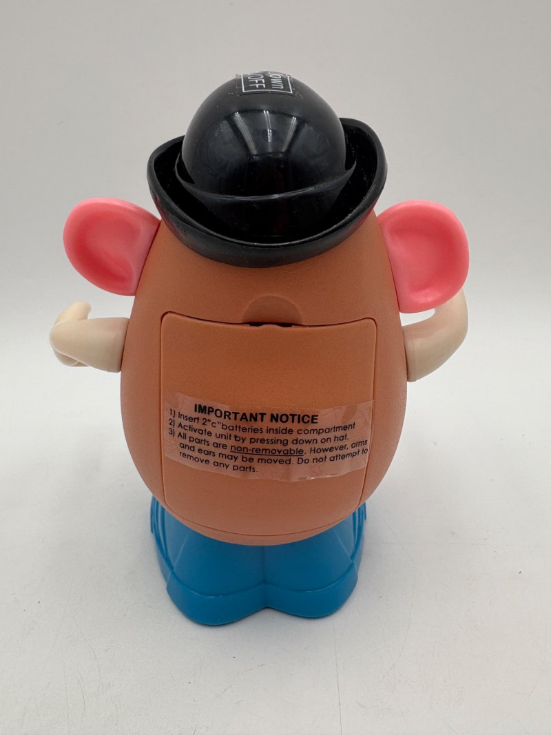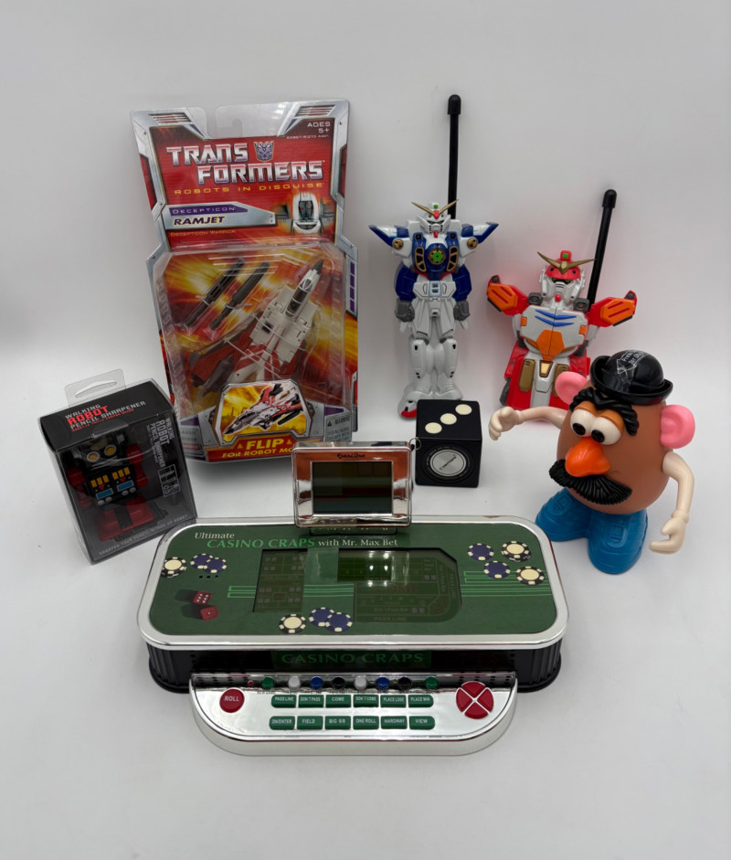 - Ramjet Transformer - new in packaging. From 2006. - Pair of Gundam Wing walkie talkies. We put batteries in them and they seemed to work! - Excalibur Electronics Ultimate Casino Game - powers up, screen lights up and buttons work, but we don't know how to gamble & didn't want to read the instruction booklet - new owner can figure out. Runs on 3 AA batteries. - Vintage cube solid state micro-radio. Runs on a single AA battery. Measures about 2" square. - Wind-up robot pencil sharpener - Mr Potatohead massager - we put batteries in and he definitely kicks you with his feet...From 1996.