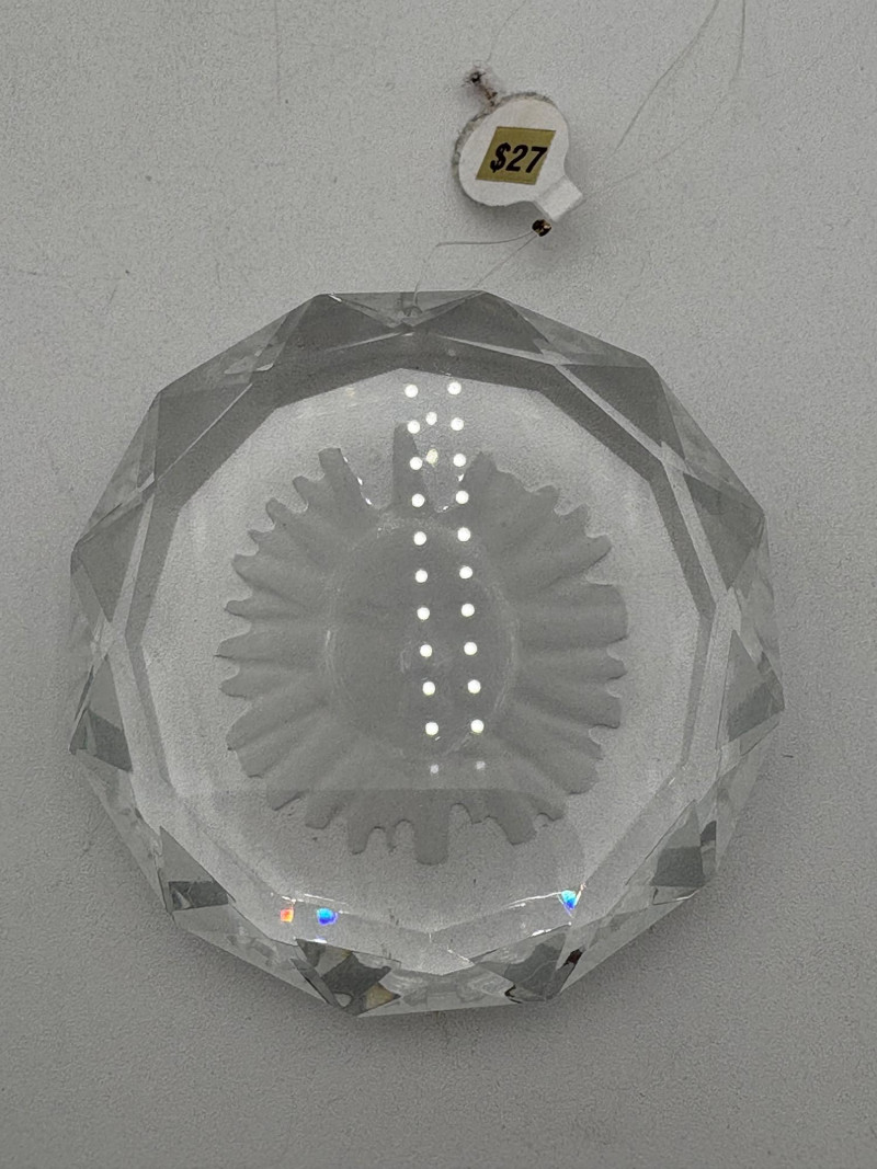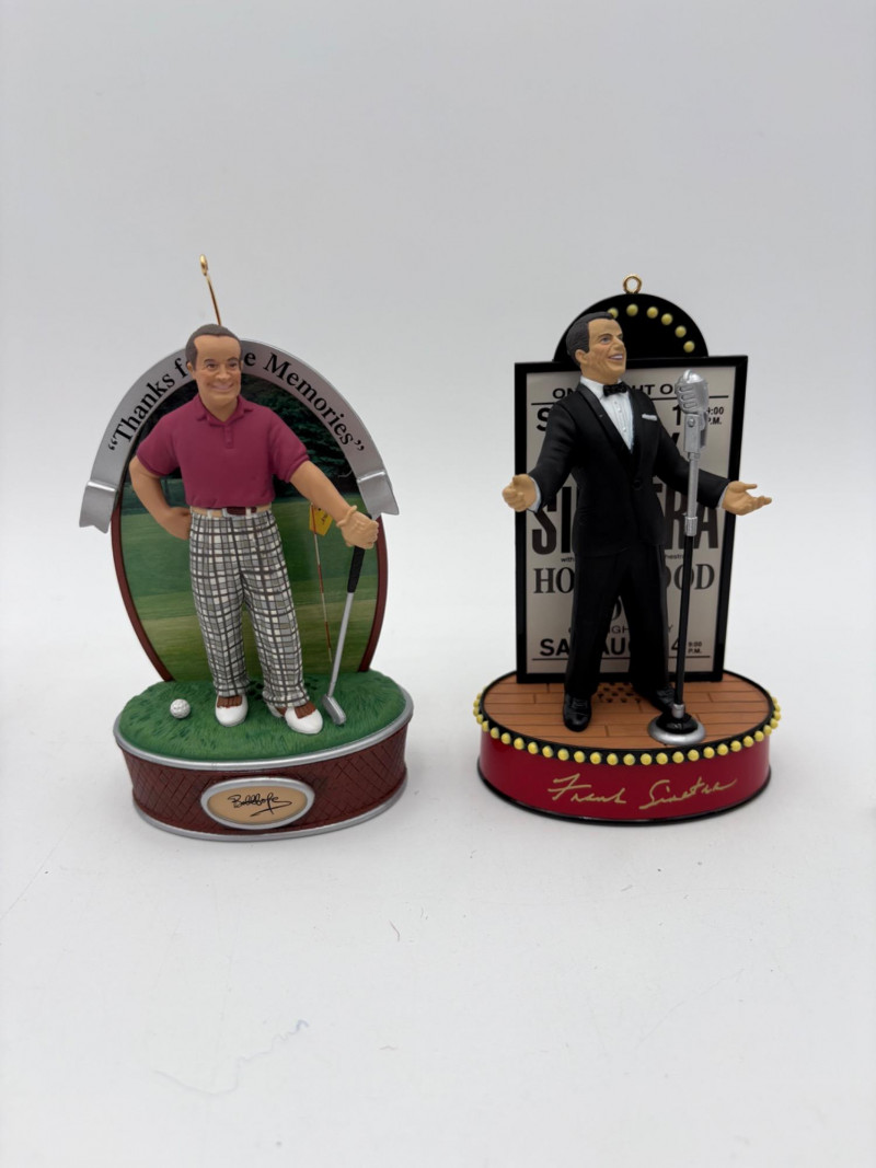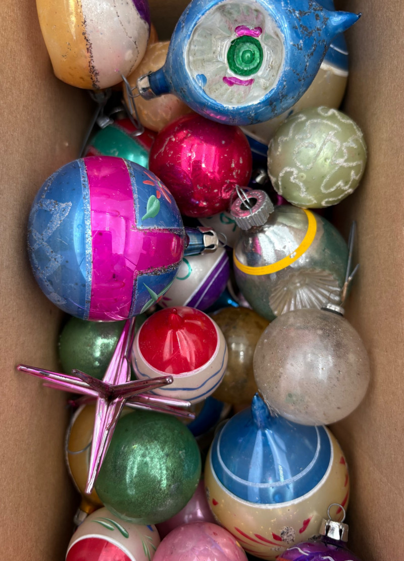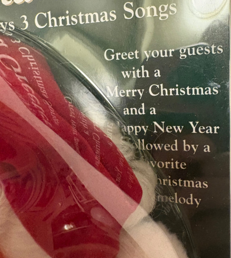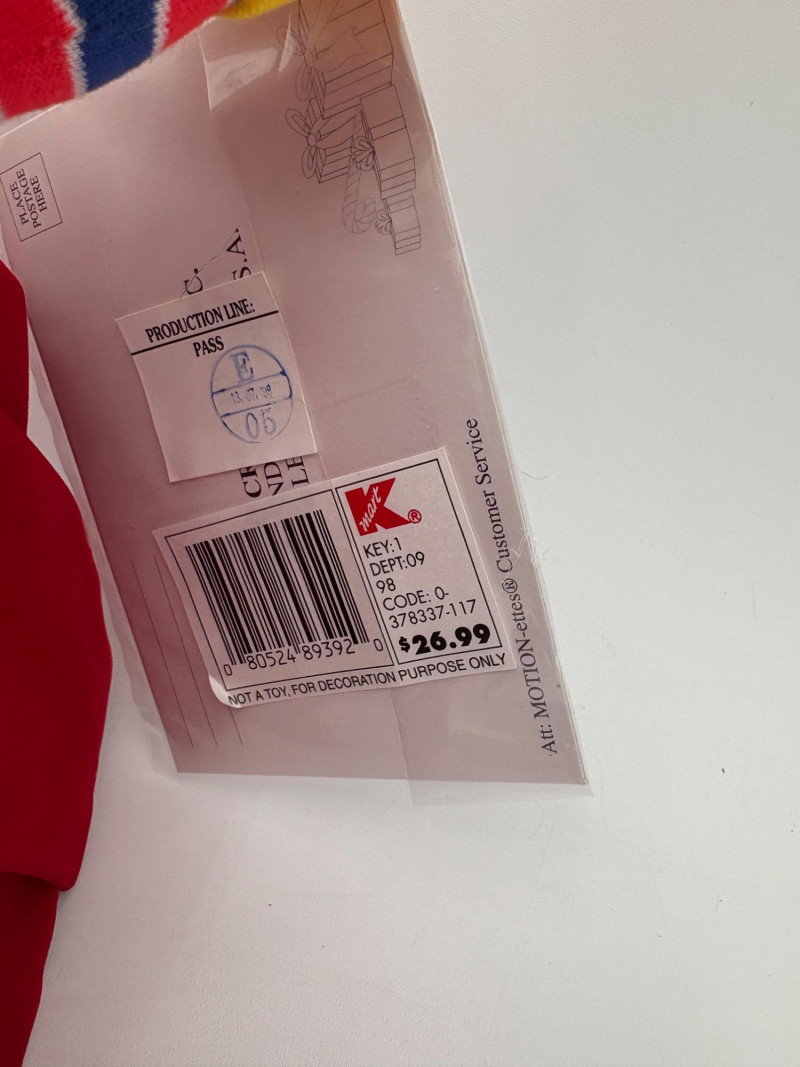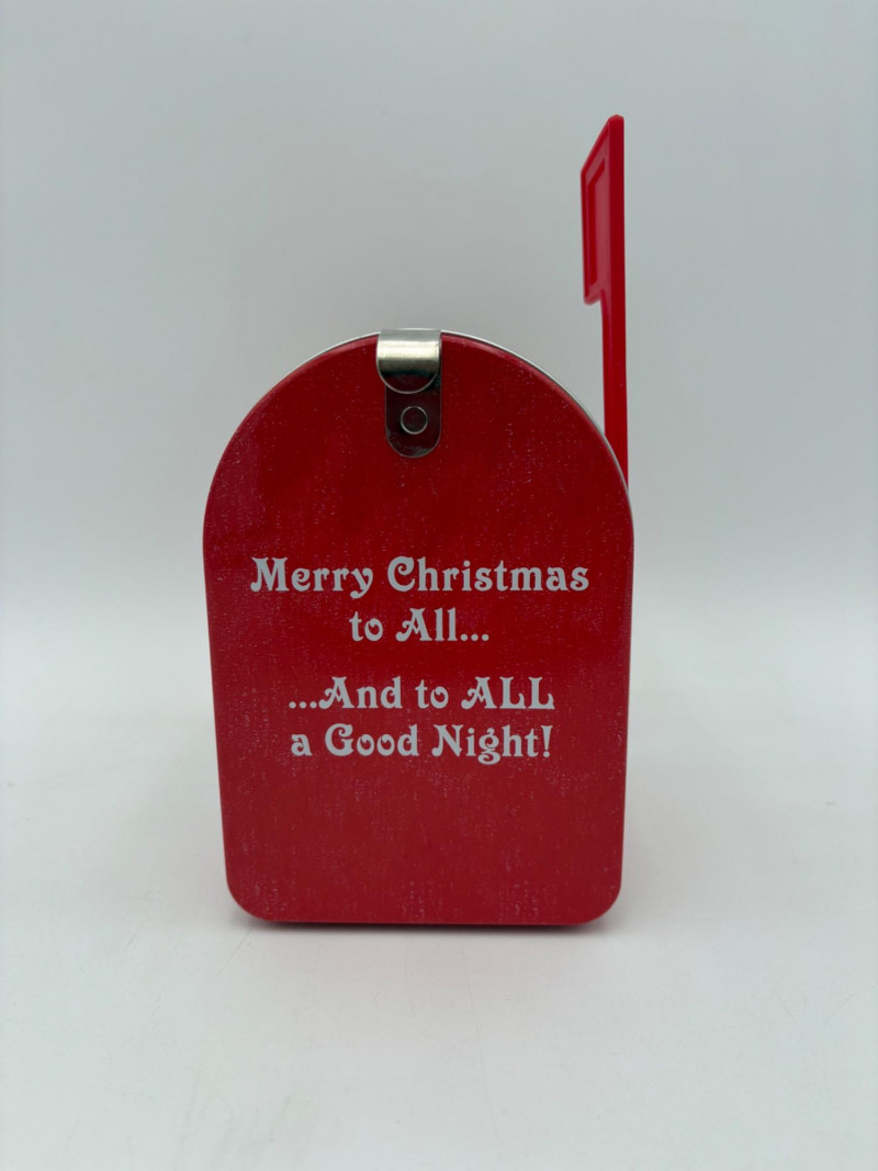 Lots of Christmas decorations and such - real variety so everyone should be able to find something they want! - Motion activated Santa greeter head is new in original heavy plastic package - we did not open to test because we wouldn't be able to get it back in with this packaging. Plays music and greets visitors. Measures approx. 7" H. - Monkey nutcracker from JC Penney Home. New with tags. Stands 14" H. - Sesame Street Ernie figure - he goes up and down slowly while he sings (an irritating) song over and over. Exactly what a toddler wants to hear...Uses 2 AA batteries. New with tags. Measures approx. 10" H. - Nice cookie gift tin featuring Santa's head in the shape of a mailbox with flag. Measures approx. 6" H x 8" W x 4" D. Looks new. - Small vintage jingle bell wall hanging with "Noel" down the front. Looks handmade, but it's not - made in Japan. Measures approx. 12" L. - Group of Christmas ornaments - several from Carleton Cards, The Music Box Company, and several good quality prism suncatcher ornaments appropriate year round. Most of this group are new with original boxes/tags. They aren't tested if they move or make sound. - Group of vintage Christmas glass ornaments - these are super thin and appear to be home-painted.
