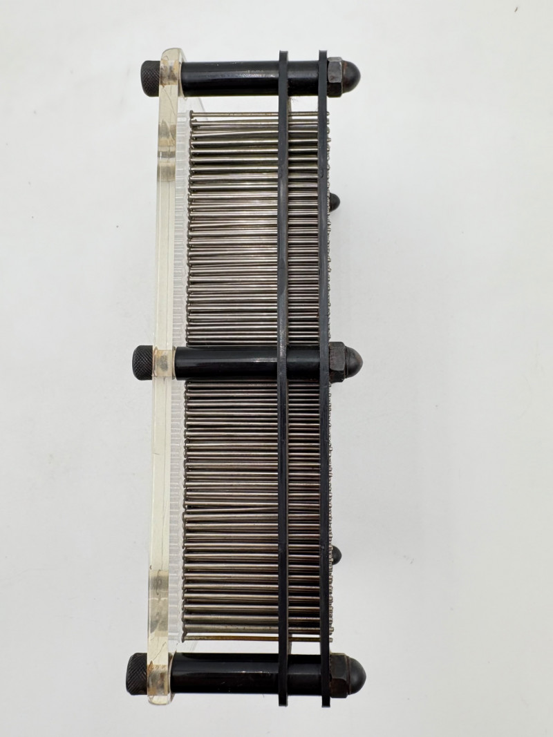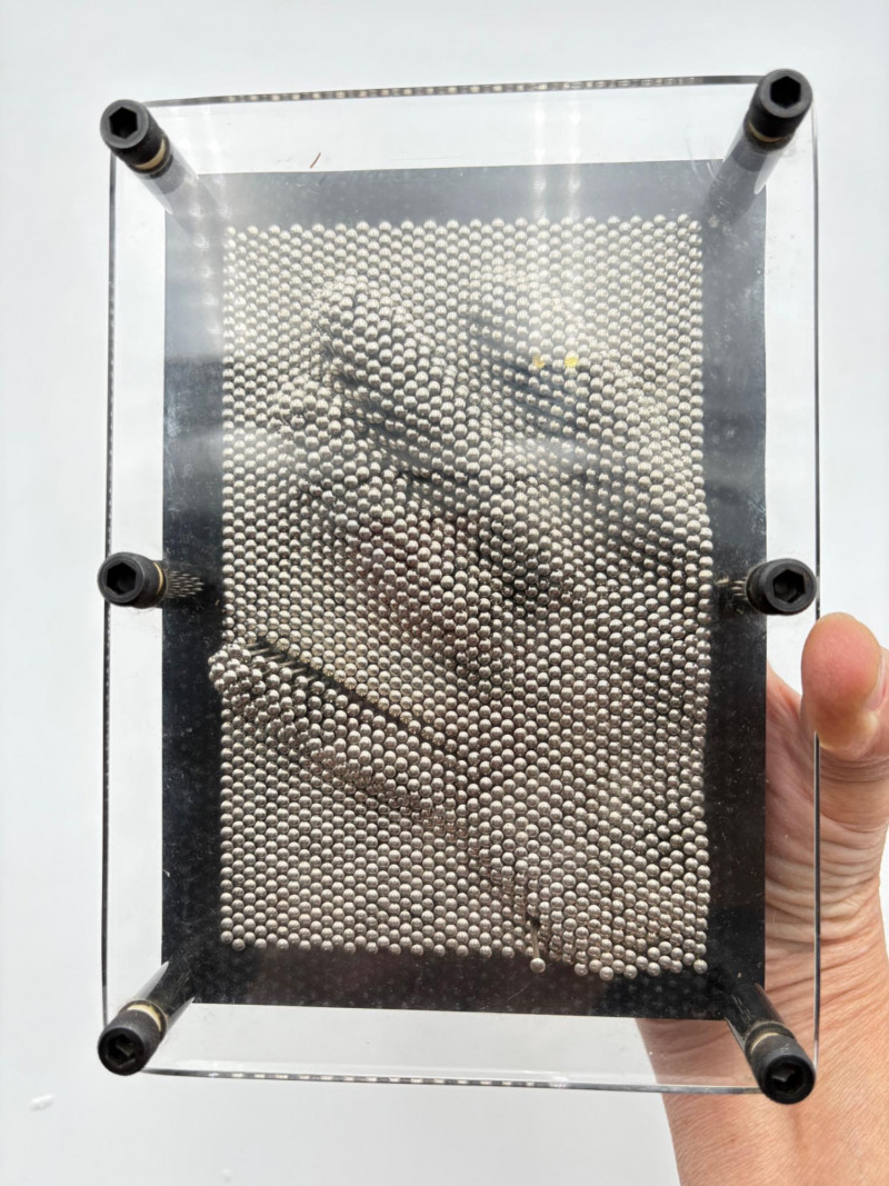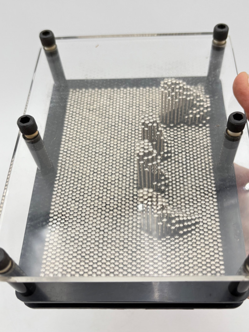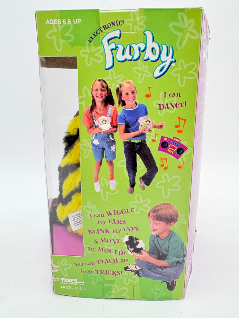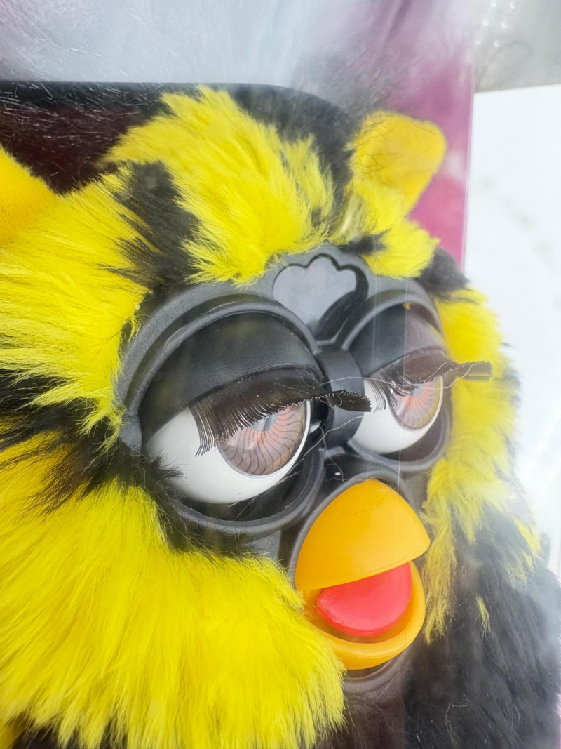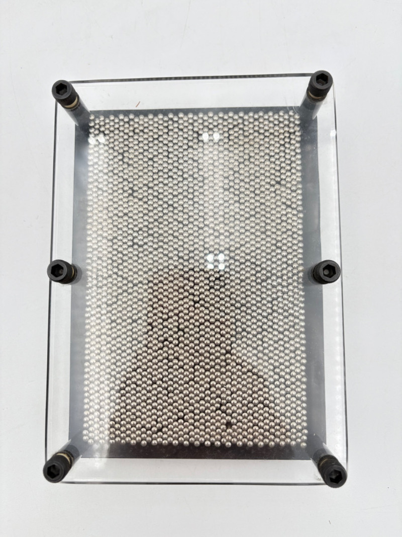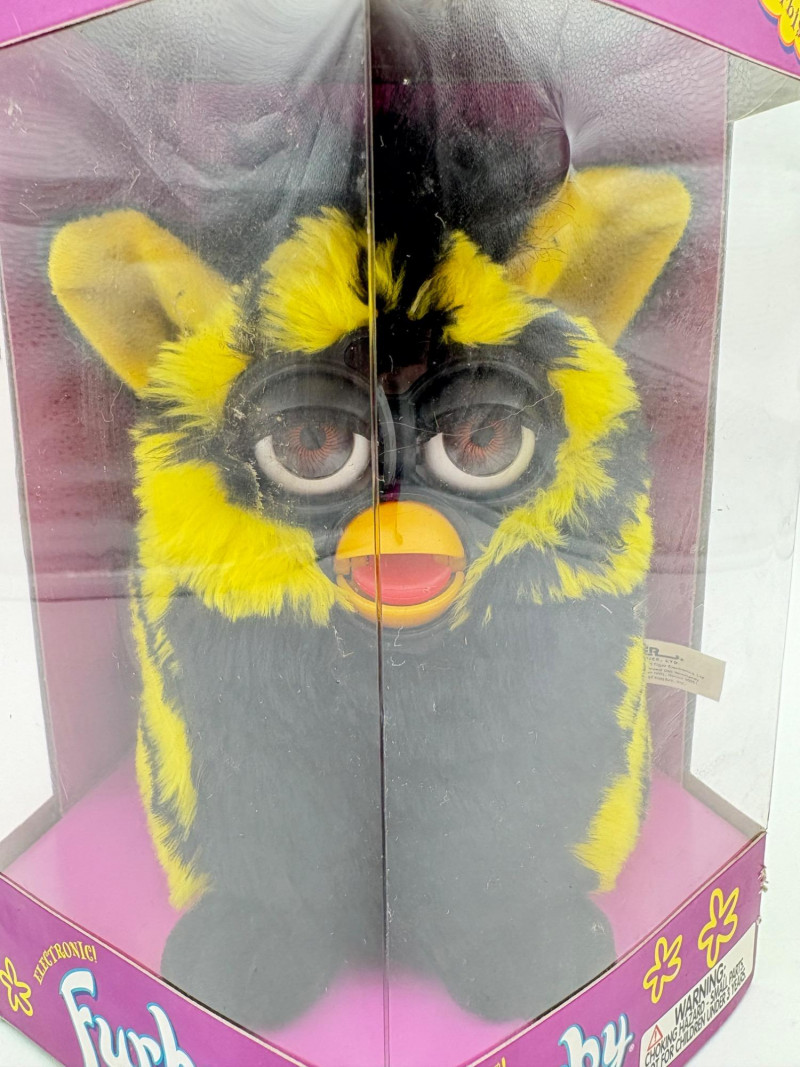 "Old School" items to keep the kids interested when you don't want them looking at the computer screen! - Vintage Spirograph set from Kenner - all parts & instructions are there - even the colored pens (although they have dried out - you can substitute any ballpoint pen). - Vintage hook rug wall hanging kit. Has all the yarn you need to create the "so 70s" landscape. Measures 18" x 24" when complete. New in original shrinkwrap from Vogart. - Furby! He might be unused as there are tape seals on the box (see photos), but we had a couple of other Furbys in open boxes that did not operate fully. We didn't test him on the off-chance that the tapes are the original seals. Be forewarned. From 1999. - Pinpressions design board. Wow, we wanted one of these so badly as a kid - we still want it now! If you are unfamiliar, the sliding pins make the impression of your hand or whatever you push against it stand out in relief! So cool! Measures approx. 7" x 5" x 2". This pinboard could use a good scrub to look terrific again. Check it out: Pin art - Wikipedia - Idropclepsidra toy - flip it & the water runs both ways. Weird. Measures about 4" x 2". -