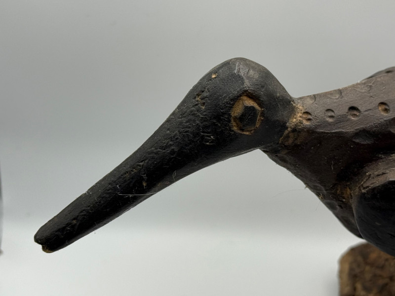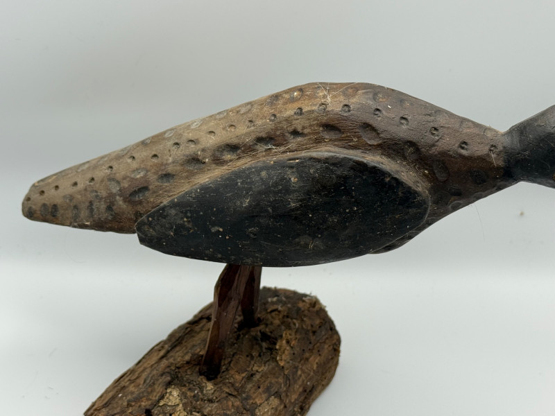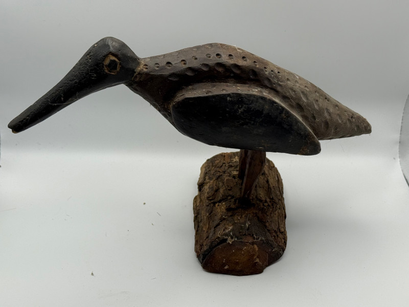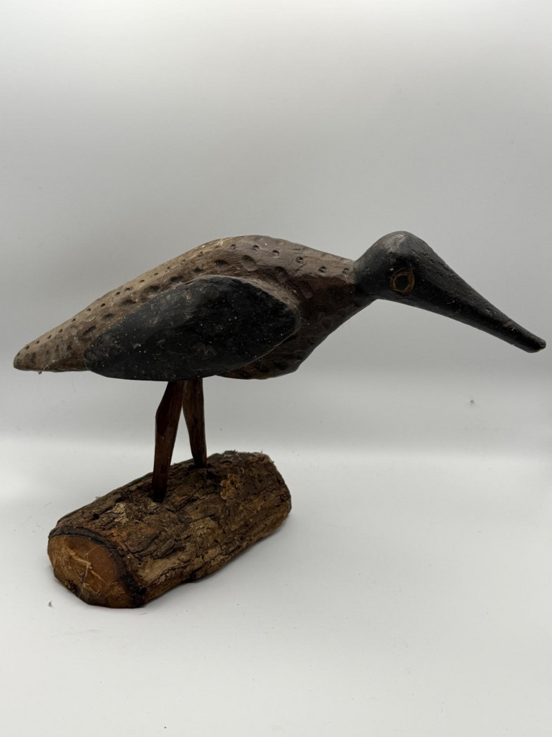 Lot # 50 - Hand-Carved Curlew Bird Sculpture on Natural Log Base