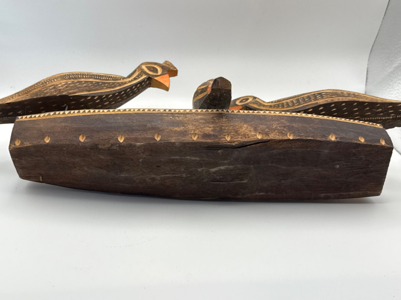 Lot # 72 - African Hand-Carved Wooden Bird Trio on Decorated Log