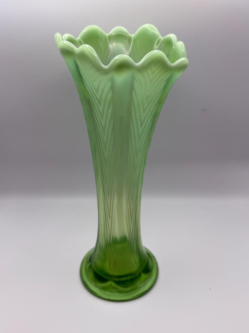 Lot # 75 - Vintage Green Opalescent Swung Vase