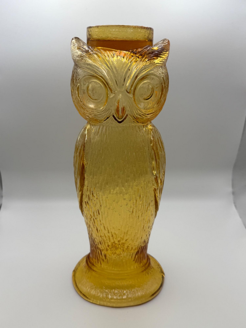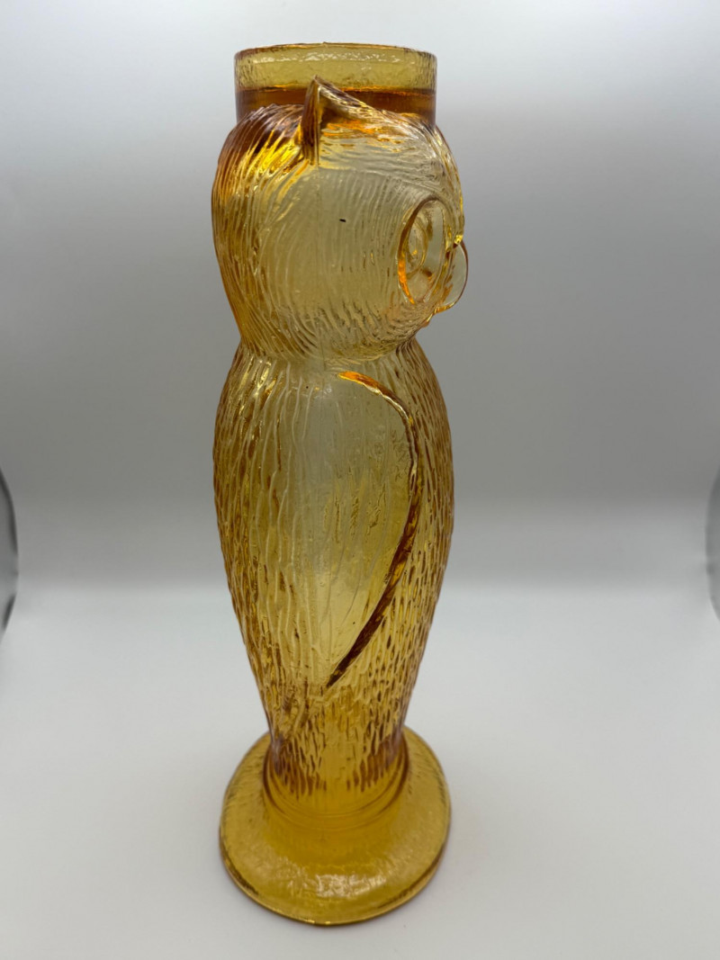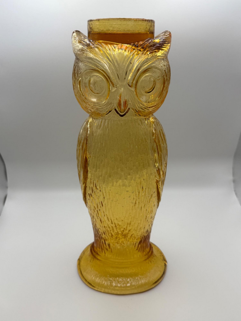 Lot # 79 - Vintage Amber Glass Owl Candle Holder
