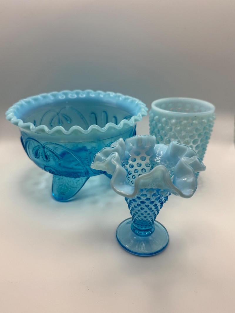 Lot # 84 - Jefferson and Fenton Blue Opalescent Glass