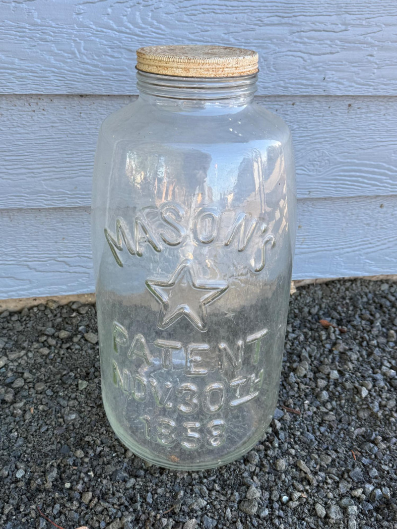 Vintage Mason's Patent Nov 30th 1858 Star Eagle 5-Gallon Glass Pickle Jar.