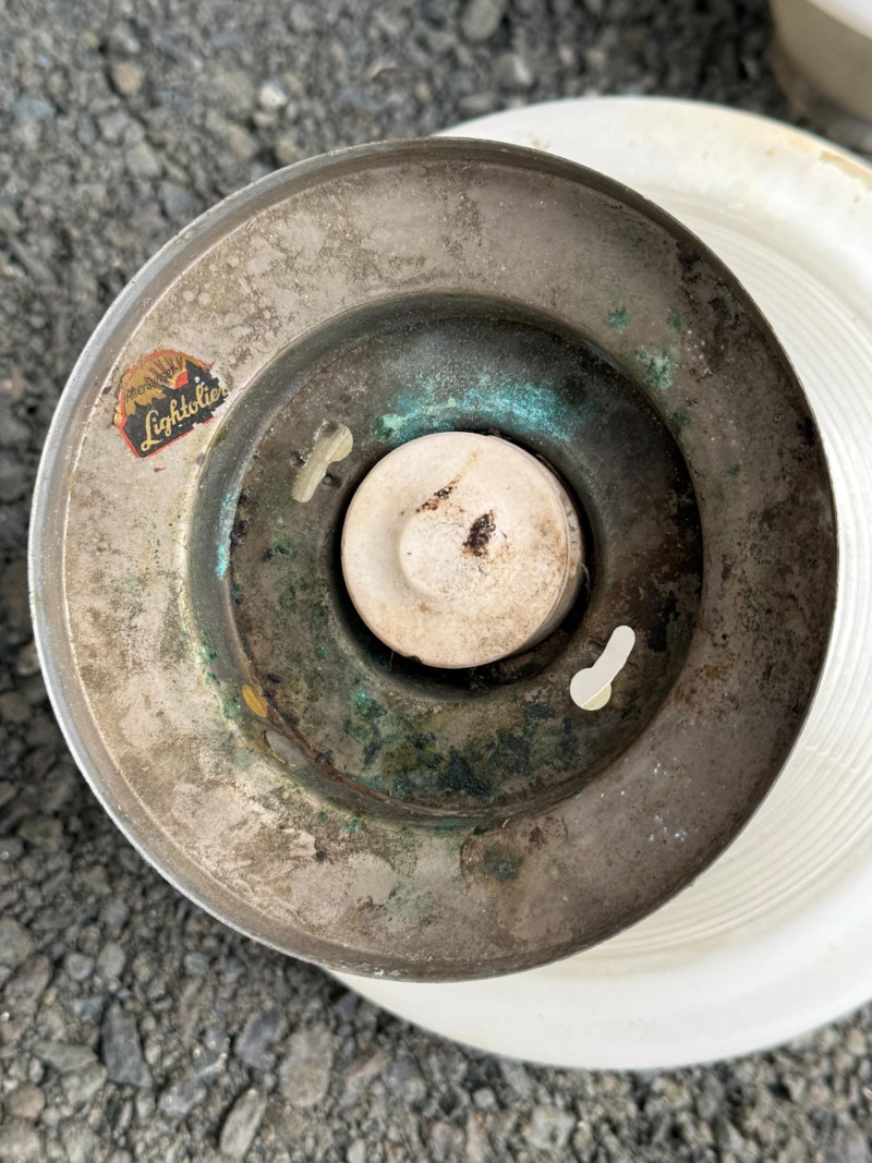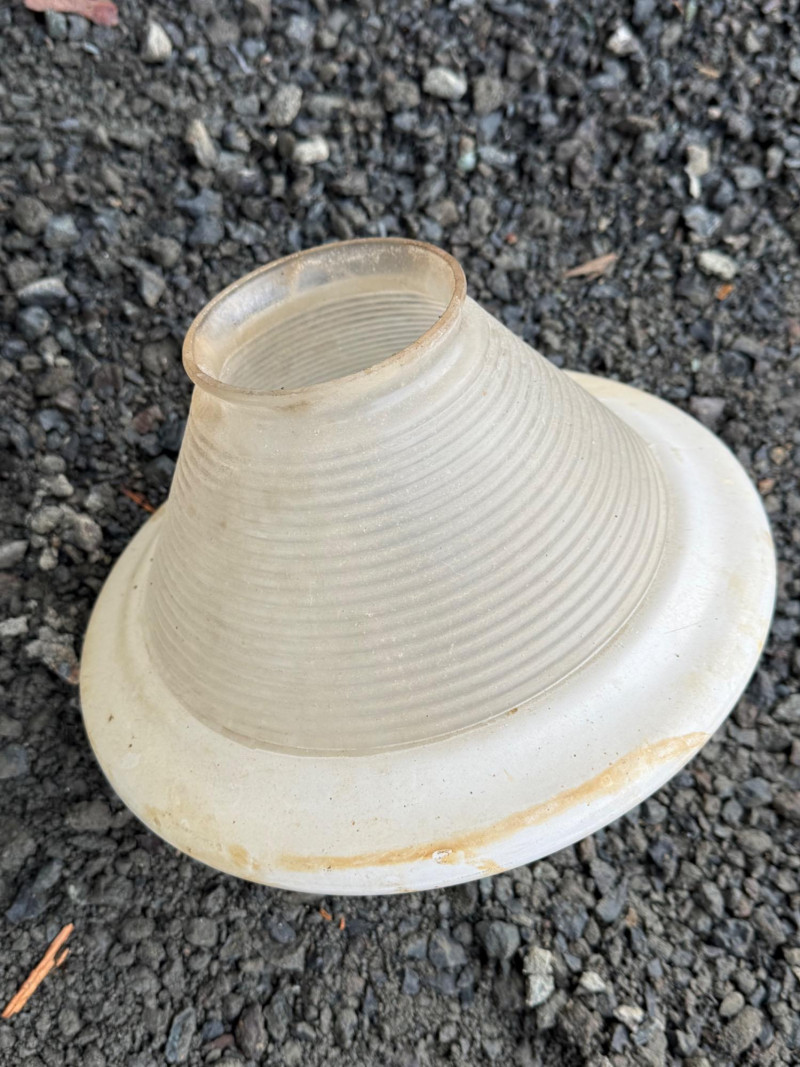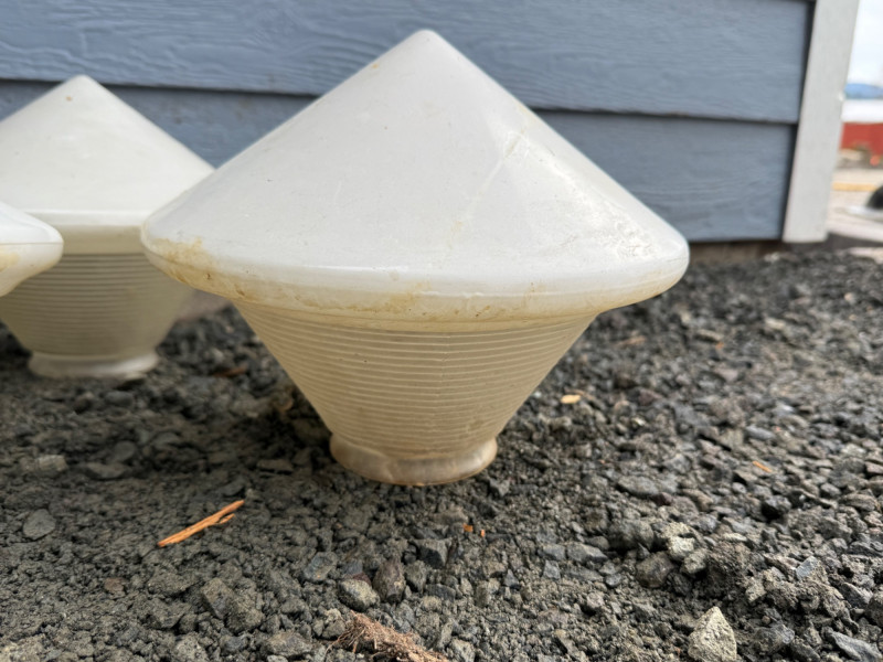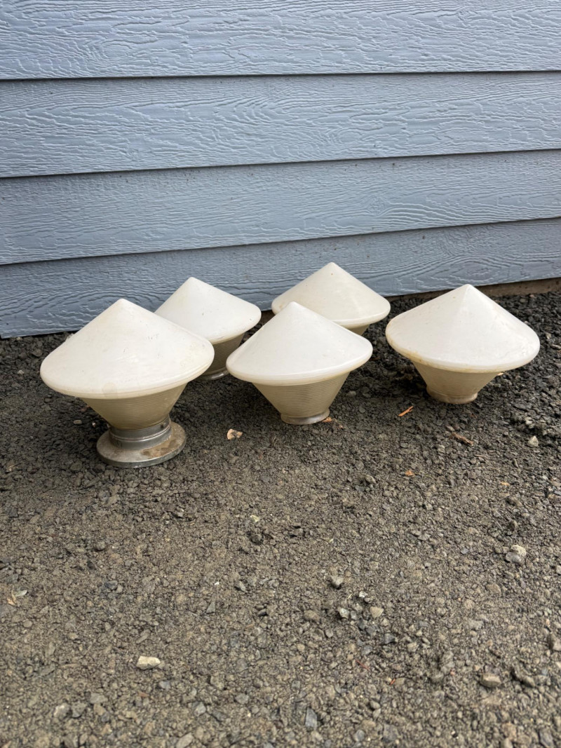 These vintage light shades came from a candy store in Palm Springs, California. Only one has electrical fixture with it. Base is 3.5” in diameter