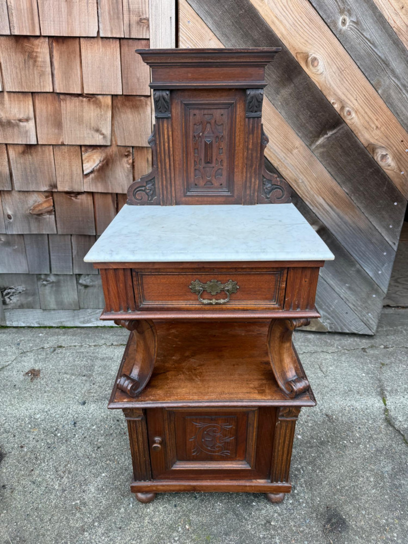 Lot # 204 - Antique Victorian Walnut Wash Stand – Marble Top with Carved Details