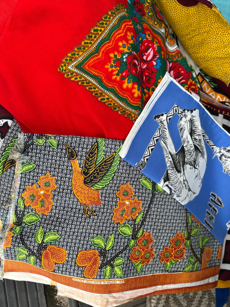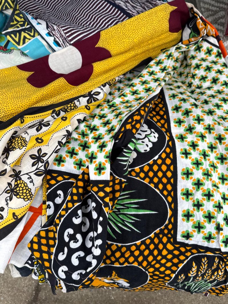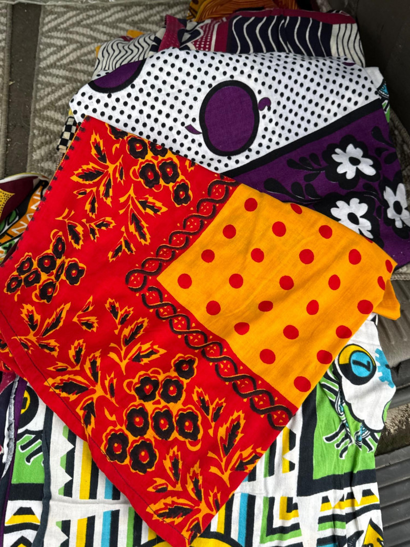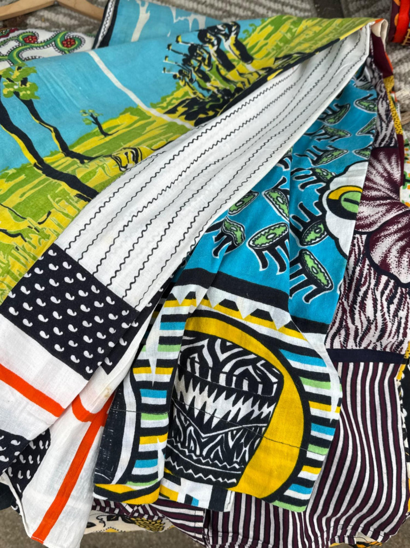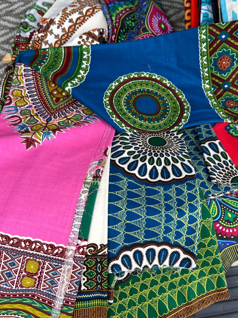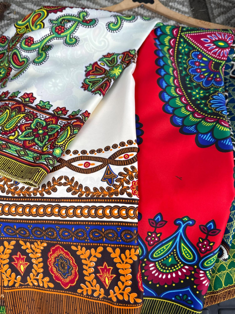 Vibrant assortment of African textiles featuring a wide range of bold patterns and saturated colors. Designs include geometric shapes, florals, animal prints, and abstract motifs in hues of red, yellow, green, blue, purple, and black. These are not wax prints but richly patterned woven or printed fabrics, each measuring at least one yard—some likely more, though not individually measured. Ideal for sewing, quilting, upholstery, or cultural display, this bundle offers expressive artistry and versatile yardage. Important Details: Material: Mixed African textiles (non-wax) Size: Each piece is at least 1 yard; some may be longer (not measured) Design Features: Multicolor palette with high-contrast combinations Traditional and contemporary African motifs: geometric, floral, animal, abstract