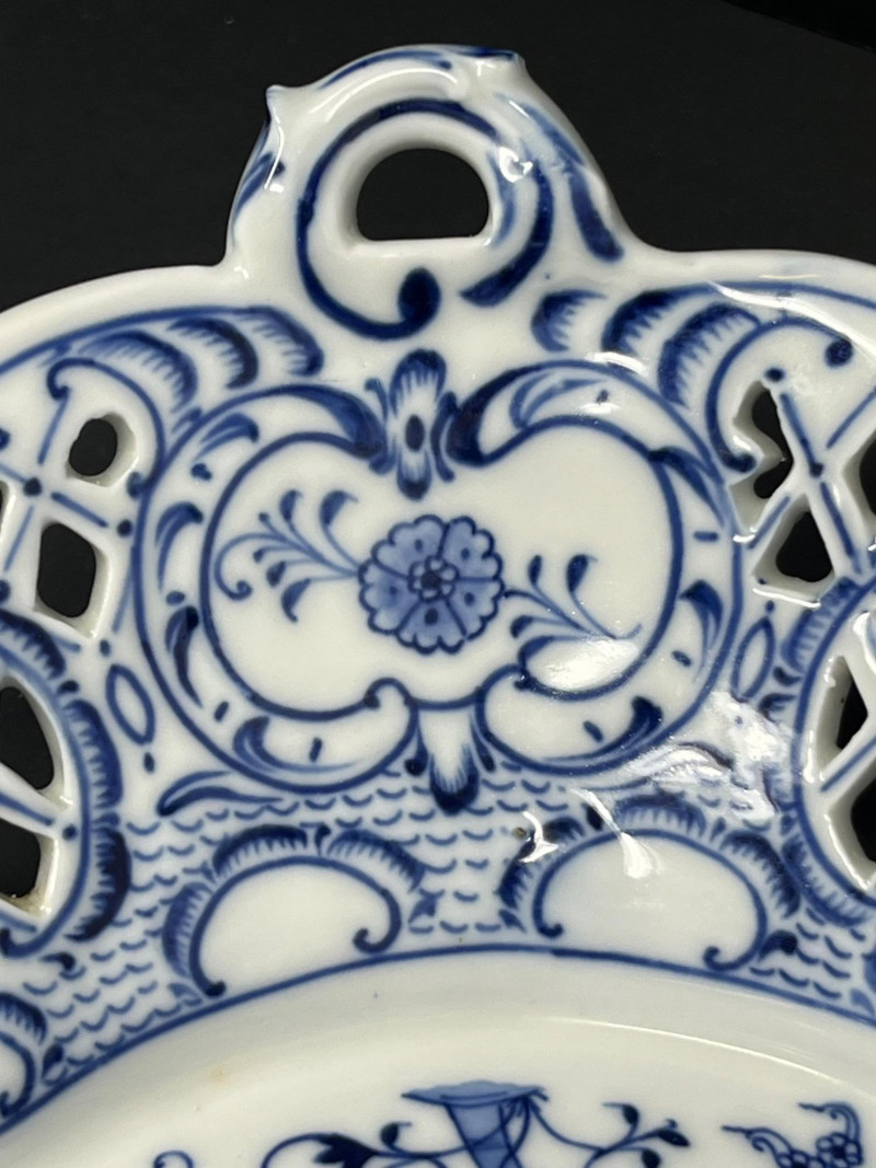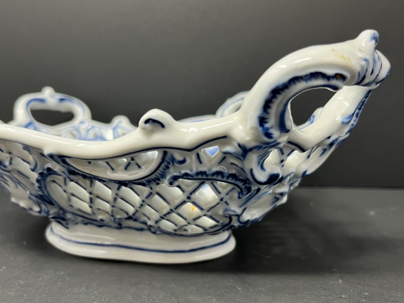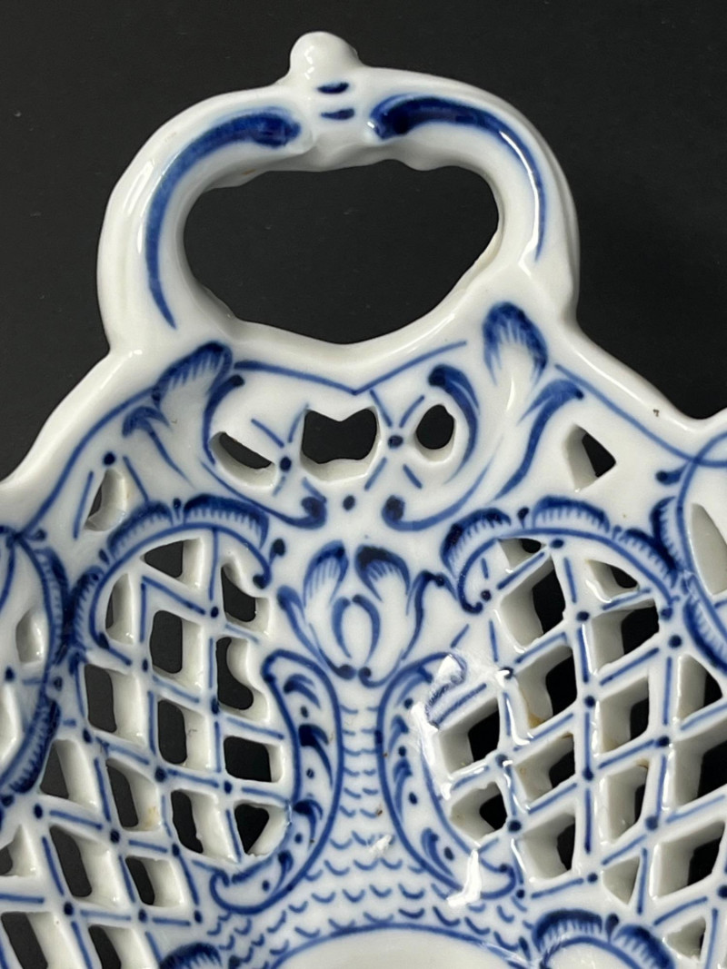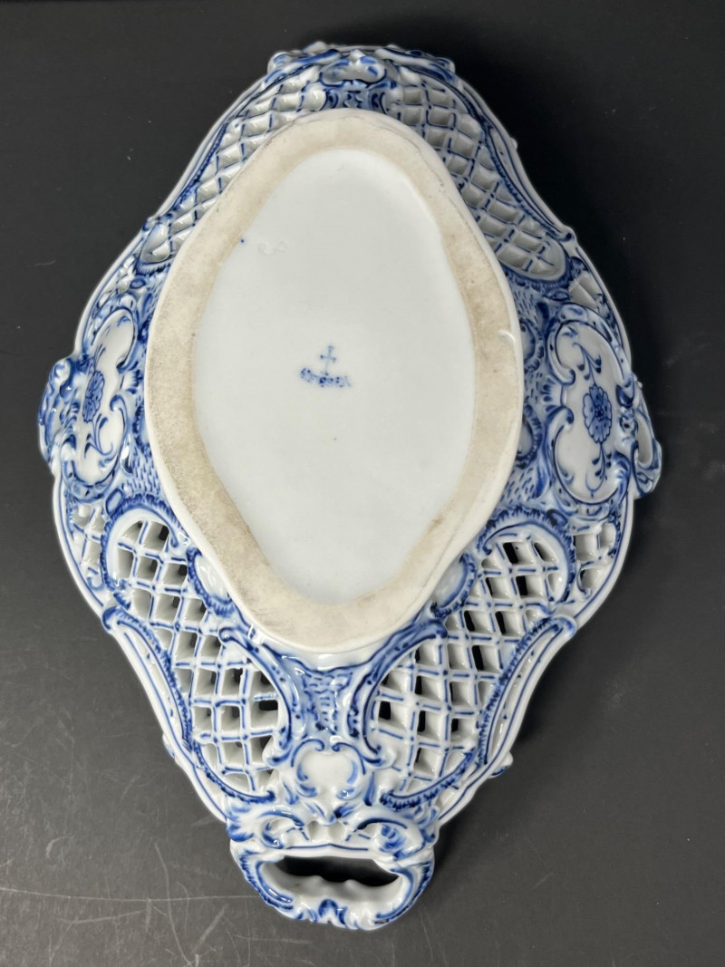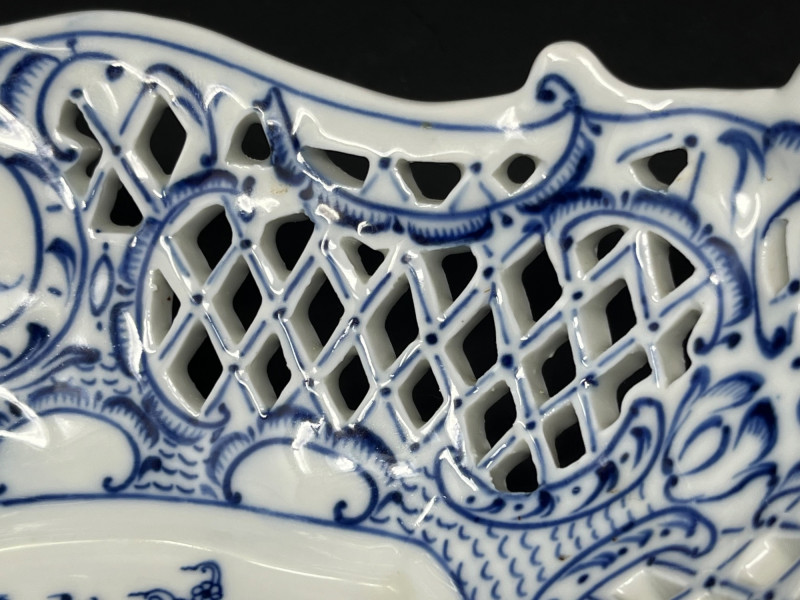 Lot # 6 - Antique German Blue & White Reticulated Porcelain Basket