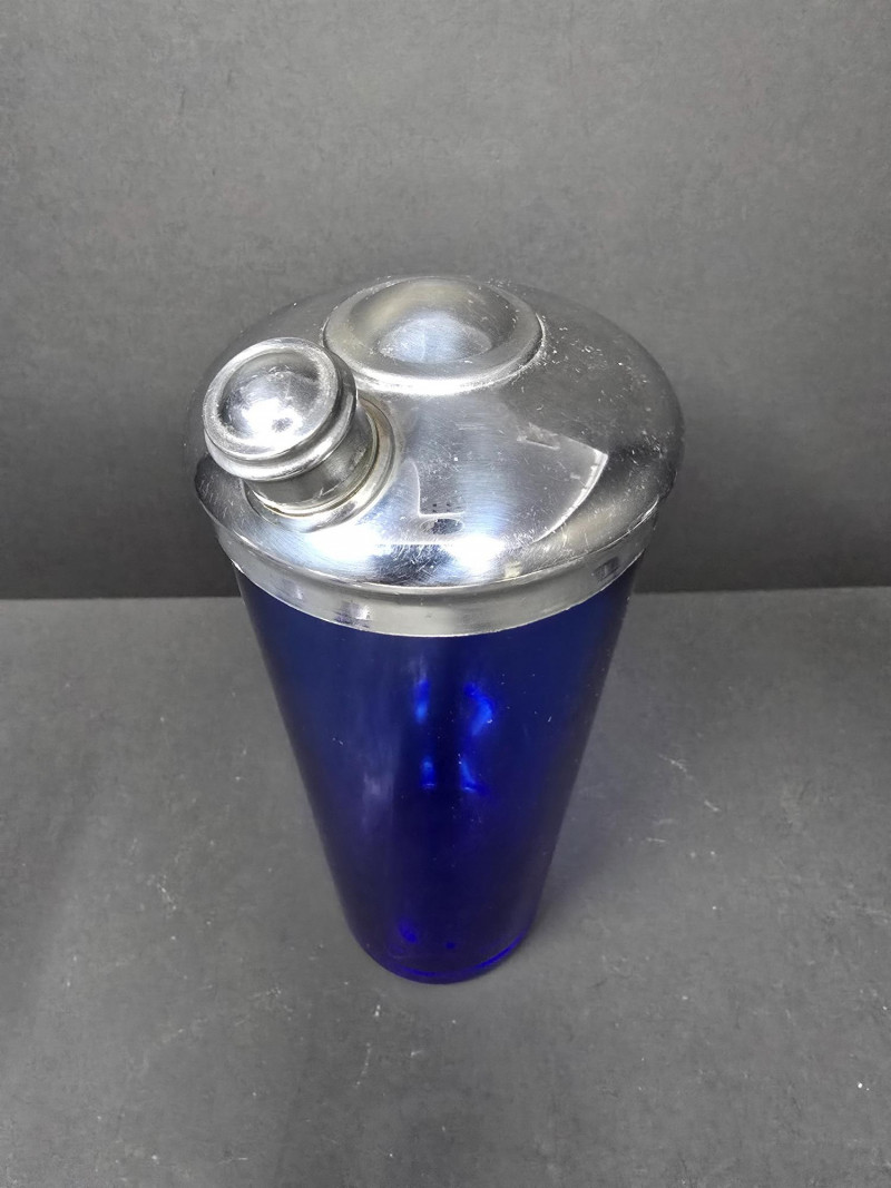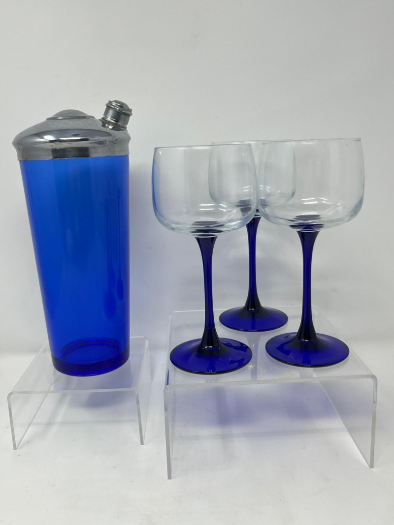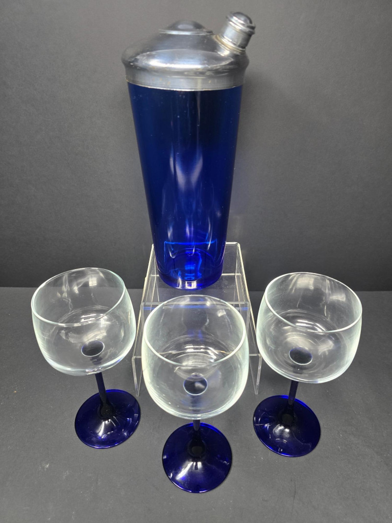 Lot # 7 - Art Deco Cobalt Blue Cocktail Shaker & Glasses – 4-Piece Set
