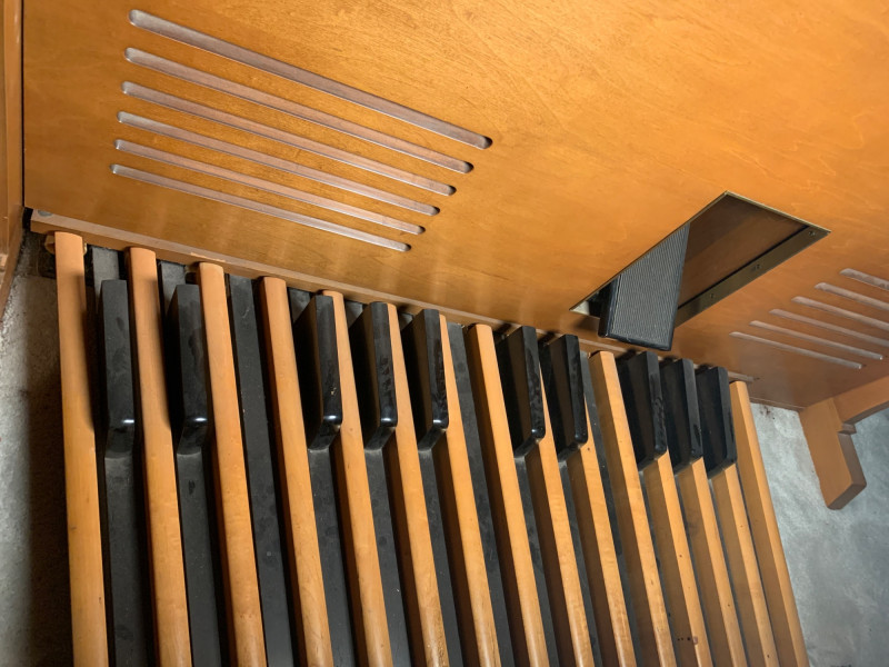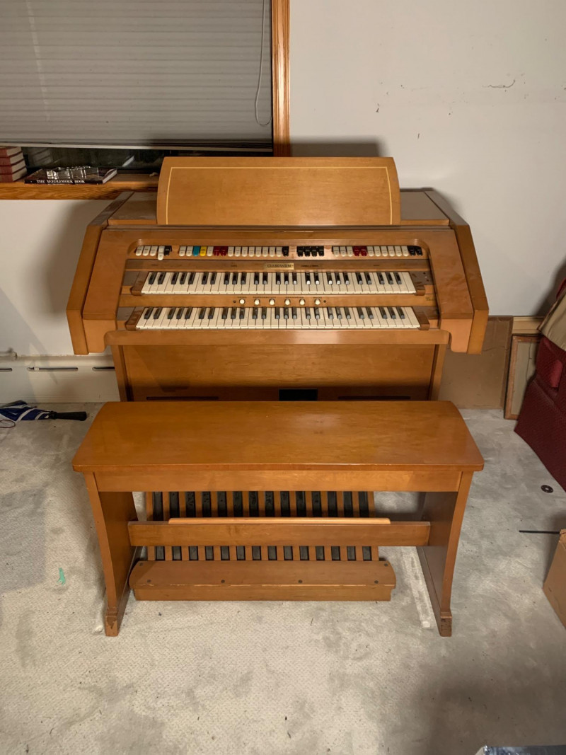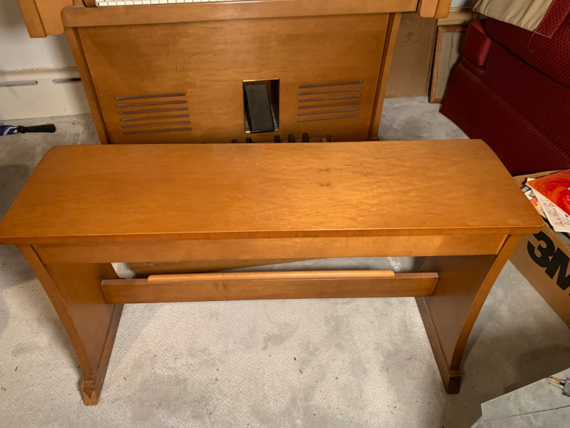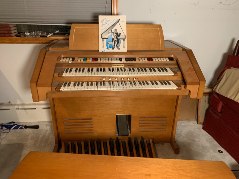 Bring home the warm, retro sound of this Gulbransen electronic organ. Crafted with solid wood and classic styling, it’s a standout piece for musicians, collectors, or anyone seeking a vintage aesthetic. Brand: Gulbransen Type: Electronic organ Features: Dual manual keyboard, built-in speakers, traditional wood cabinet Dimensions: 46" L × 48" W × 40" H Includes: Matching bench Condition: Powers on and is fully functional, with one key producing a drone note that will require servicing. Surface wear is present and documented in the photographs. A great addition to any music room or studio, this organ combines nostalgic charm with playable character.
