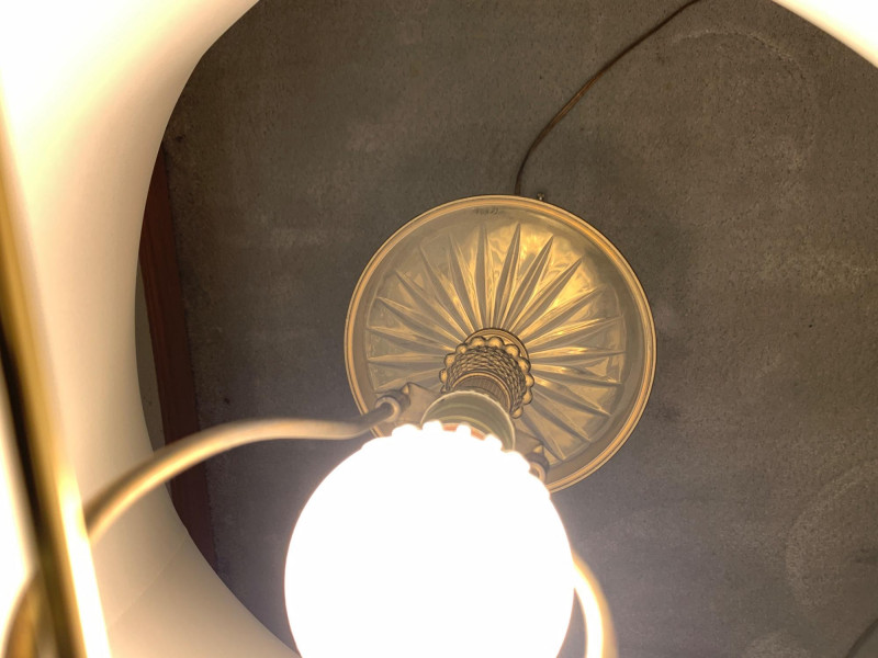 Very good vintage condition with minor wear consistent with age. No chips or cracks in the glass. Brass shows light tarnish and surface marks, adding to its vintage character.
