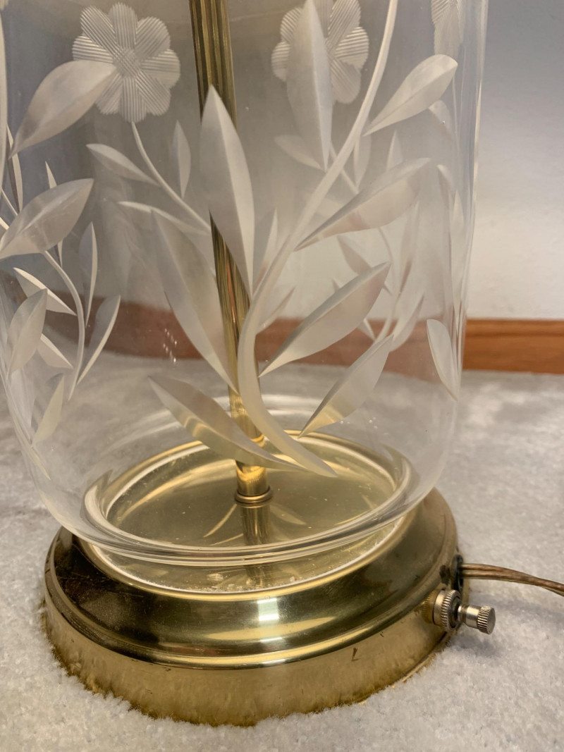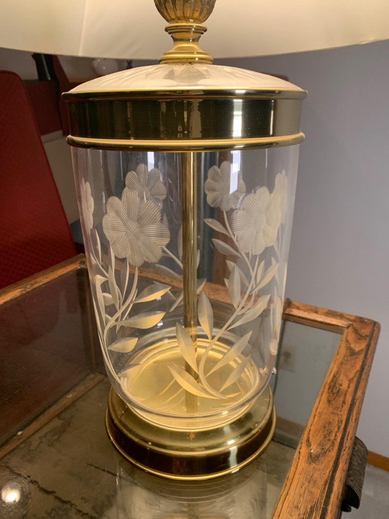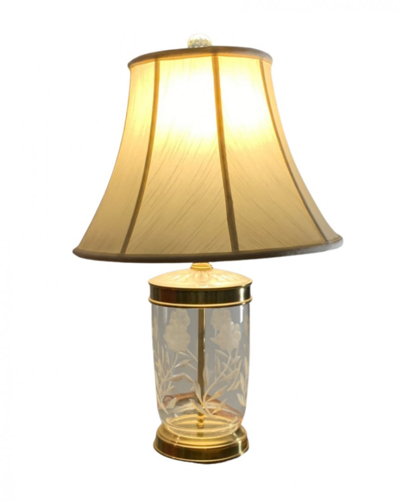 Lot # 17 - Vintage Brass & Etched Glass Table Lamp – Elegant Art Deco Style