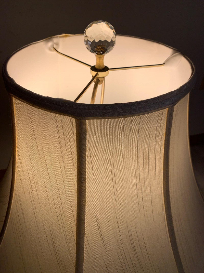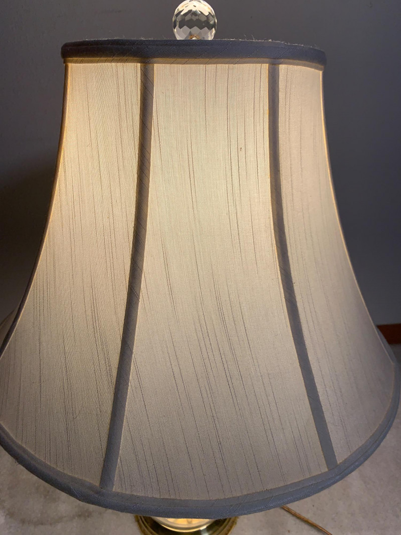Elevate your interior with this striking vintage brass and etched glass table lamp. Its tall, graceful silhouette and finely detailed glass shade evoke classic Art Deco elegance, making it a standout piece for any room. Whether you're a collector or simply love timeless design, this lamp offers both beauty and function. Features: Material: Solid brass base with etched frosted glass shade Design: Art Deco-inspired with floral and scrollwork etching Finish: Warm aged patina on brass (unpolished for authenticity) Functionality: Standard socket with rotary switch; tested and in working condition Cord: Original vintage cord in good condition Measurements (approx.): Height: 31" Shade width: 19" Base diameter: 7.5" Condition: