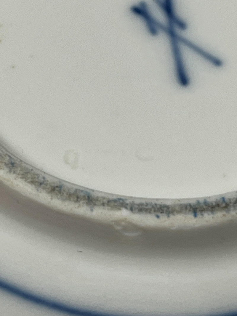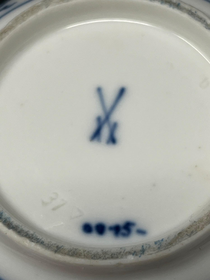 The Meissen porcelain trademark, the Crossed Swords, can be found on the base of authentic pieces.