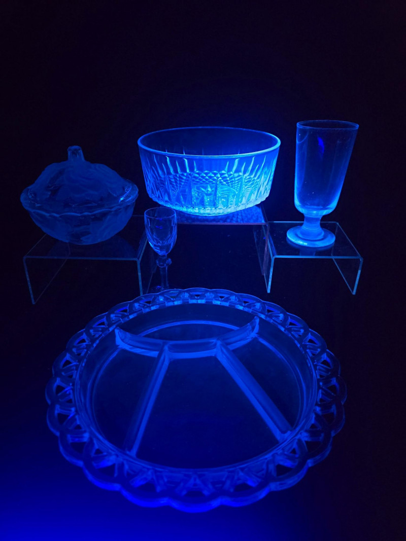 Lot # 25 - Vintage UV-Reactive Glass Collection – Brilliant Blue Glow & Waterford