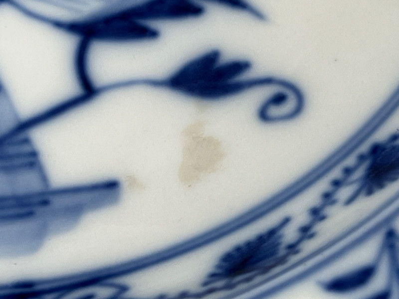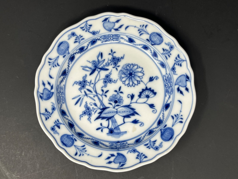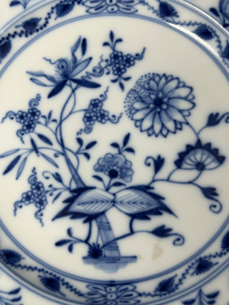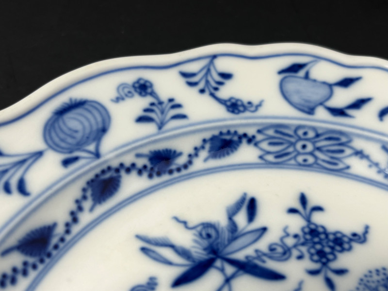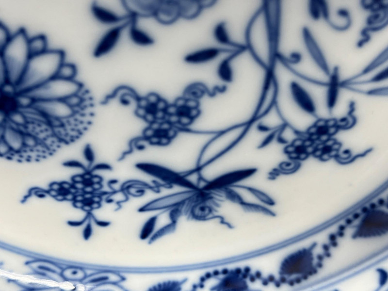 Meissen porcelain, specifically featuring the iconic "Blue Onion" pattern.