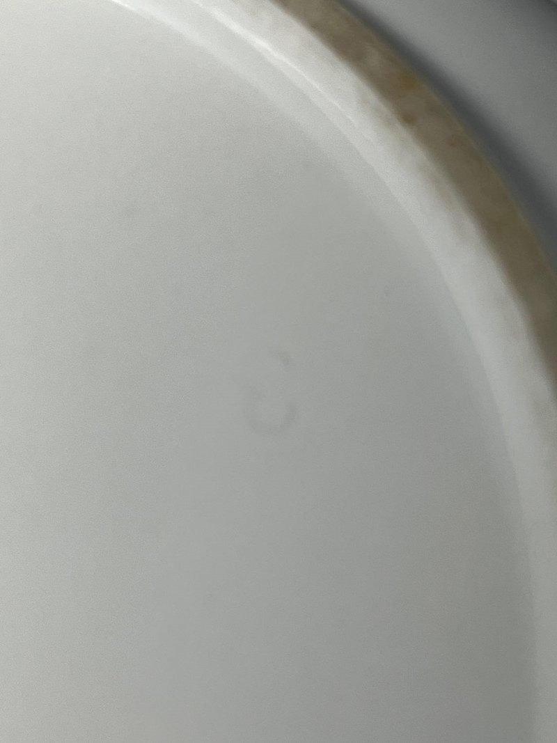 A fine example of European porcelain artistry, this antique Meissen plate showcases a traditional blue floral motif on a white ground. The scalloped edge adds elegance, while the central floral medallion and surrounding botanical border reflect the refined aesthetic of 18th–19th century Meissen design. Maker: Meissen (Germany) Markings: Underglaze blue crossed swords on base; impressed “681”; additional faint marks and hand-painted numerals Design: Blue floral pattern with scalloped rim Diameter: 9 inches Condition: Very good antique condition. Minor wear consistent with age, including faint discoloration and light base wear. No visible cracks or chips. Provenance: From a private Northwest estate collection Notes: