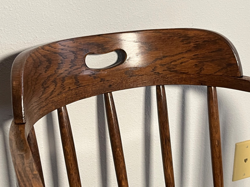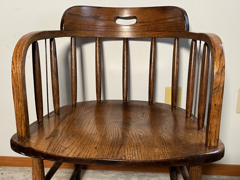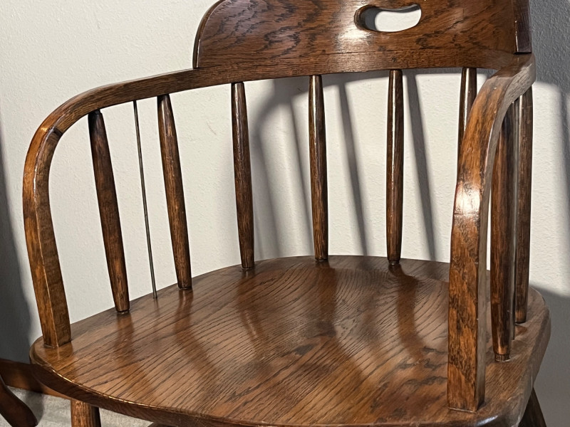 Add a touch of timeless style to your space with this matching pair of vintage office chairs from Boling Chair Co., a respected name in American furniture manufacturing. These chairs blend form and function with classic mid-century lines, sturdy construction, and enduring appeal. Details: Manufacturer: Boling Chair Co., Siler City, North Carolina Era: Mid-20th century (likely 1950s–1970s) Quantity: 2 matching chairs Materials: Solid wood frames with upholstered seats and backs Style: Mid-century modern / industrial office Features: Curved backrests, tapered legs, and original hardware Condition:
