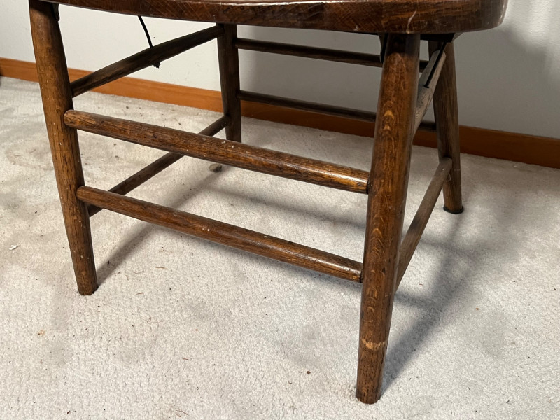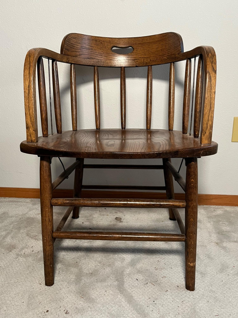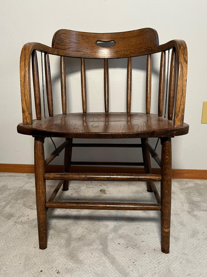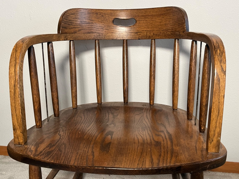 Add a touch of timeless style to your space with this matching pair of vintage office chairs from Boling Chair Co., a respected name in American furniture manufacturing. These chairs blend form and function with classic mid-century lines, sturdy construction, and enduring appeal. Details: Manufacturer: Boling Chair Co., Siler City, North Carolina Era: Mid-20th century (likely 1950s–1970s) Quantity: 2 matching chairs Materials: Solid wood frames with upholstered seats and backs Style: Mid-century modern / industrial office Color: [Insert upholstery and wood tone—e.g., olive green vinyl with walnut-stained wood] Features: Curved backrests, tapered legs, and original hardware Condition: