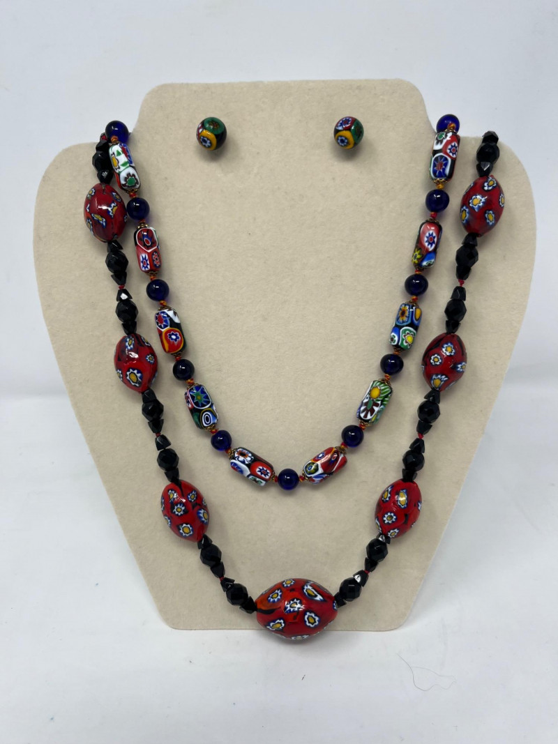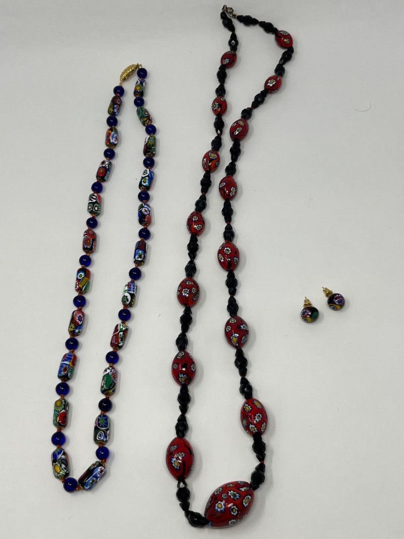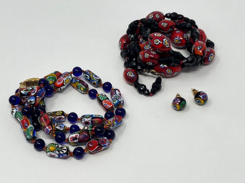 Lot # 61 - Vintage Millefiori Glass Jewelry Set – Two Necklaces & Earrings
