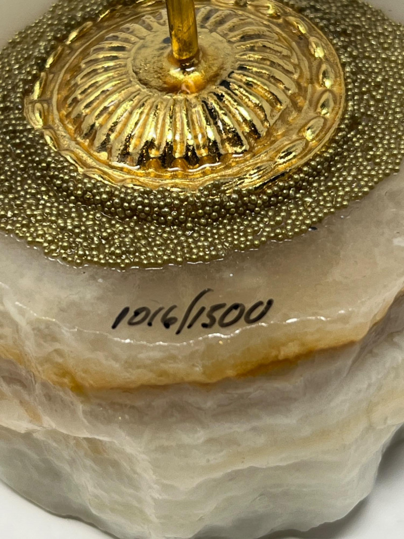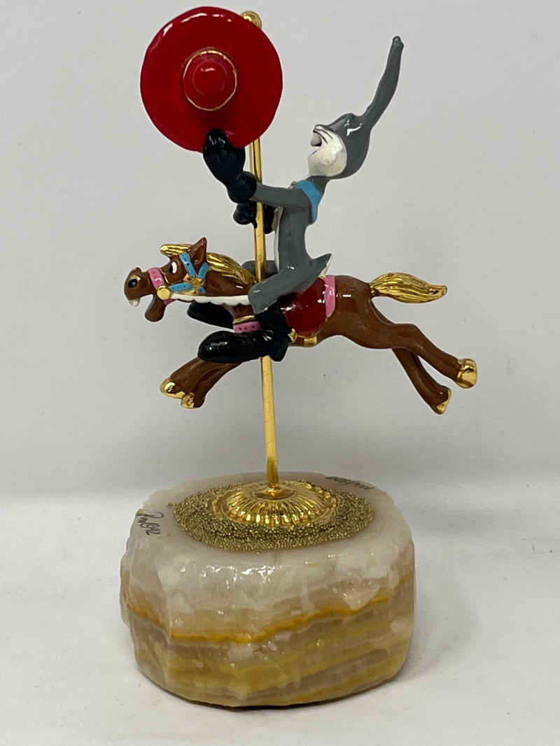 This is an original limited edition Ron Lee Bugs Bunny sculpture, numbered 1016 of 1500, produced in 1992. The figure features Bugs Bunny in classic form, rendered in Ron Lee’s signature hand-painted style and mounted on a rough cut stone base that adds natural texture and visual weight. Details: Artist: Ron Lee Character: Bugs Bunny (Warner Bros.) Edition: Limited to 1500 pieces – this is #1016 Year of Production: 1992 Base: Rough cut stone Condition: Excellent – no chips, cracks, or repairs This piece is signed and dated by the artist and retains its original felt bottom. A standout addition for collectors of animation memorabilia, Ron Lee sculptures, or vintage decorative art.