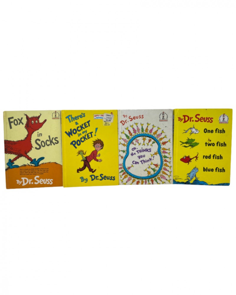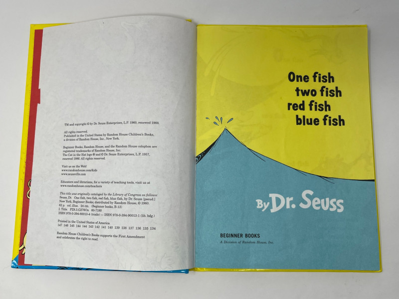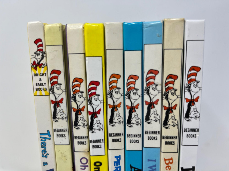 This listing features a vibrant collection of 13 Dr. Seuss books, spanning several decades of publication. Each volume showcases the imaginative storytelling and iconic illustration style that define the Seuss legacy. A perfect lot for collectors, educators, or anyone building a nostalgic library. Included Titles & Edition Years: The Cat in the Hat – 1957 edition Green Eggs and Ham – 1960 edition Hop on Pop – 1963 edition One Fish Two Fish Red Fish Blue Fish – 1960 edition Horton Hears a Who! – 1954 edition Fox in Socks – 1965 edition Dr. Seuss’s ABC – 1963 edition The Sneetches and Other Stories – 1961 edition Yertle the Turtle and Other Stories – 1958 edition Oh, the Thinks You Can Think! – 1975 edition I Can Read with My Eyes Shut! – 1978 edition There’s a Wocket in My Pocket! – 1974 edition Mr. Brown Can Moo! Can You? – 1970 edition Condition Overview: