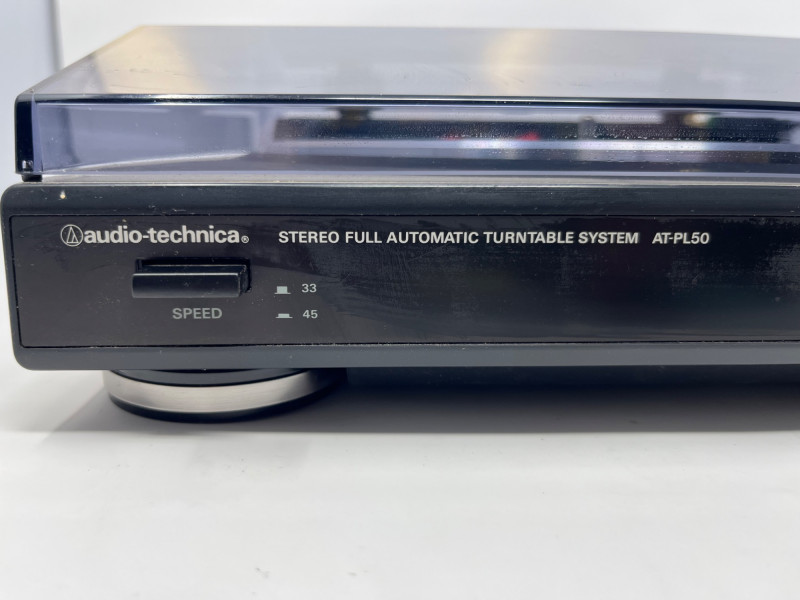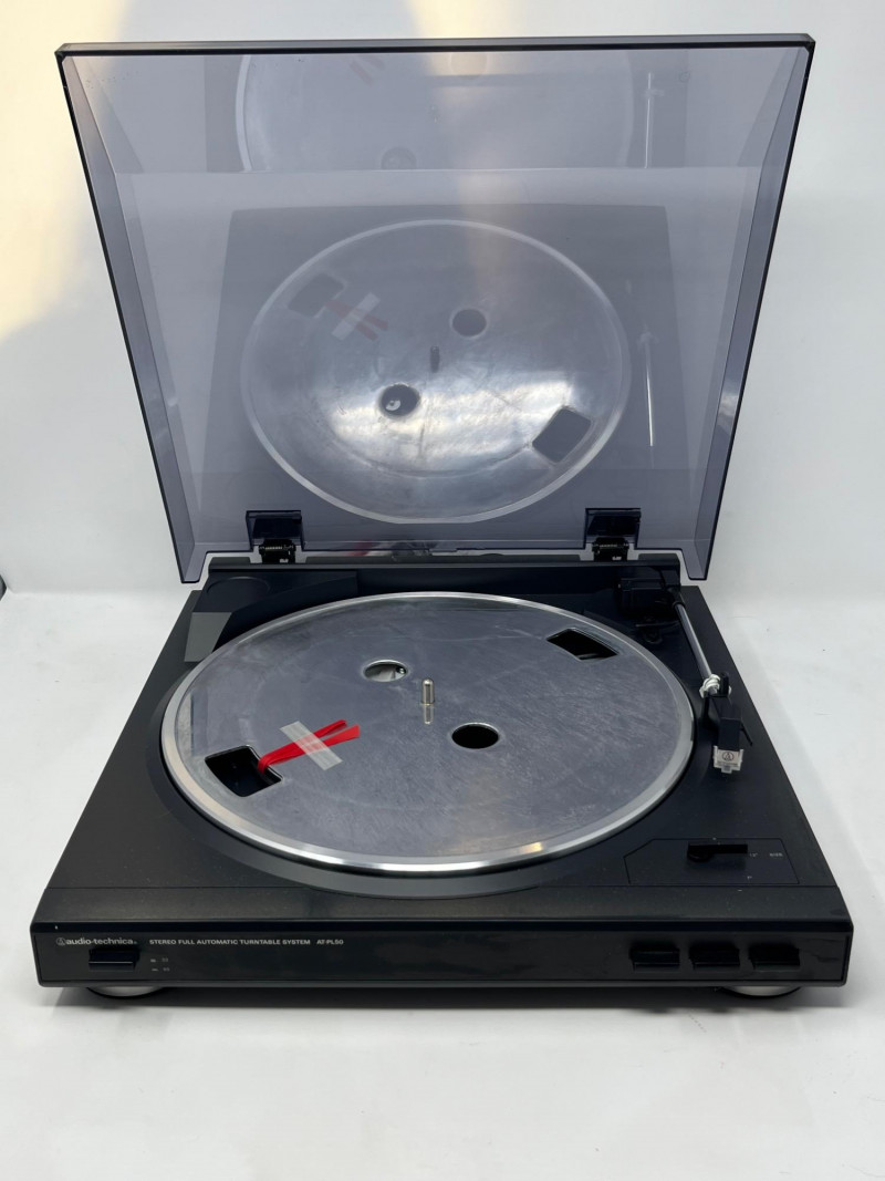 Offered here is a factory-new Audio-Technica AT-LP60 stereo turntable, a full automatic belt-drive system celebrated for its reliable performance and sleek, minimalist design. Ideal for both seasoned vinyl collectors and newcomers seeking a plug-and-play experience, this unit includes: Transparent hinged dust cover Integrated tonearm with factory-installed cartridge Front panel controls for start/stop, speed selection (33/45 RPM), and tonearm return RCA output for easy connection to powered speakers or amplifiers This model is known for its ease of use, consistent playback quality, and compatibility with a wide range of vinyl records. Whether you're building a vintage audio setup or adding a dependable player to your collection, the AT-LP60 delivers. Notable Features: Fully automatic operation Belt-drive system Two-speed playback (33 ⅓ and 45 RPM) Compact footprint with modern styling