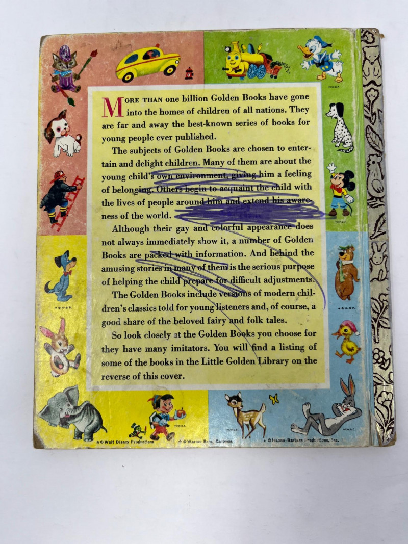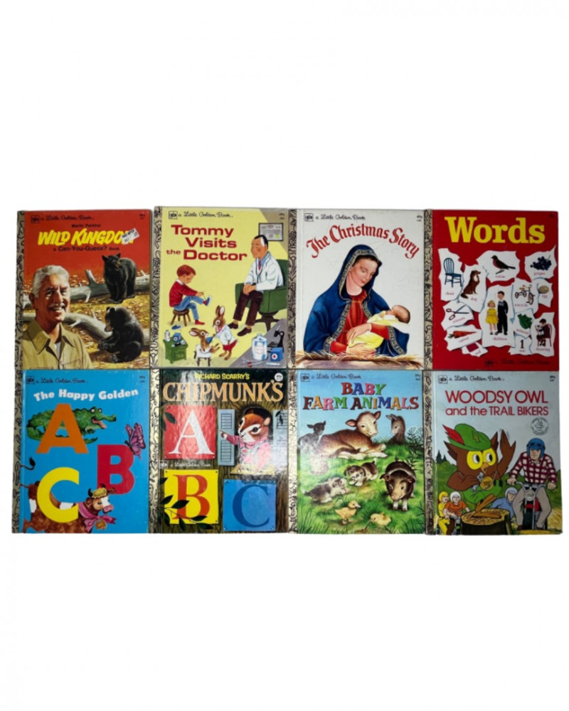 This estate lot features a nostalgic collection of 34 vintage Little Golden Books, offering a delightful cross-section of mid-century children’s publishing. Ideal for collectors, educators, or creative repurposing. Included Titles: The Poky Little Puppy Scuffy the Tugboat Tootle The Saggy Baggy Elephant The Shy Little Kitten The Little Red Hen The Tawny Scrawny Lion Baby Farm Animals The Jolly Barnyard Prayers for Children The Fuzzy Duckling The Three Bears The Color Kittens The Golden Egg Book Plus 20 additional assorted titles spanning various publication years Condition Overview: Books show varied wear consistent with age and use Several volumes have ripped pages or writing inside One book is missing its back cover Gold foil spines intact on most titles Please refer to included photos for detailed condition Sold as-is This 34-book lot presents a charming opportunity to own a piece of publishing history. Whether for display, restoration, or storytelling, these books retain their timeless appeal.