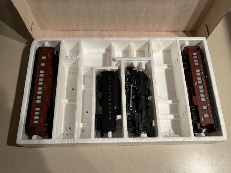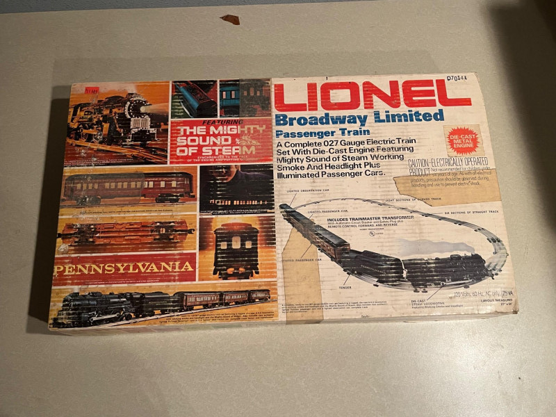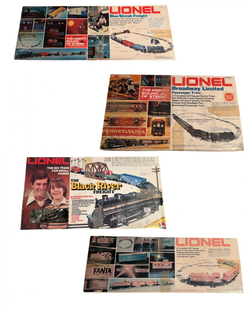 This listing features a varied collection of four vintage Lionel train sets, spanning multiple production eras and styles. A great opportunity for collectors, restorers, or display enthusiasts seeking authentic Lionel pieces with vintage character. Included Sets: Lionel O-Gauge Freight Set (Postwar Era) 2-6-2 steam locomotive with tender Assorted freight cars: boxcar, gondola, caboose Includes track and transformer (may be incomplete) Condition: Good; untested, light cosmetic wear Lionel Santa Fe Diesel Set (1970s) Dual F3 diesel units in Warbonnet livery Matching passenger cars with interior lighting Track and power supply included (may be partial) Condition: Very good; untested Lionel Pennsylvania Flyer Set (Modern Era) 0-8-0 steam locomotive with smoke and sound features Boxcar, tank car, illuminated caboose FasTrack oval and controller (may not be complete) Condition: Excellent; untested Lionel Christmas Express Set (Limited Edition) Holiday-themed steam engine and cars Boxcar, flatcar with presents, caboose Seasonal track layout and remote (may be incomplete) Condition: Excellent; untested, display-only Important Notes: Sold as is– sets are untested and may not be complete Original boxes included– show wear but remain usable for storage Cosmetic wear consistent with age and prior handling Condition Summary: Overall condition ranges from good to excellent. Locomotives and accessories are untested and may require cleaning, servicing, or parts. Please review all photos carefully for details on contents and condition.