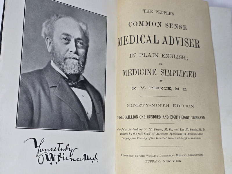 A foundational pharmaceutical reference published by the American Pharmaceutical Association. This edition includes standardized formulas for medicinal preparations used in pharmacies across the U.S. during the 1920s. Bound in tan cloth with black and gold title label. The People's Common-Sense Medical Adviser by R.V. Pierce, M.D.