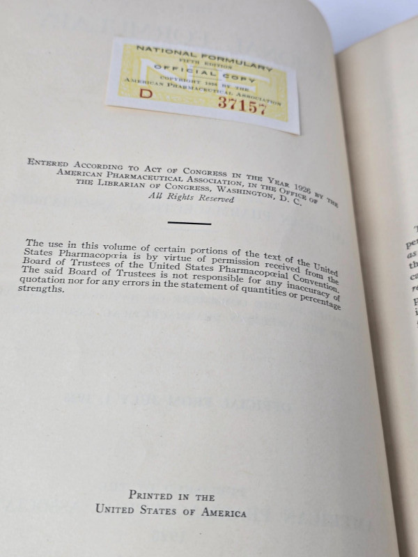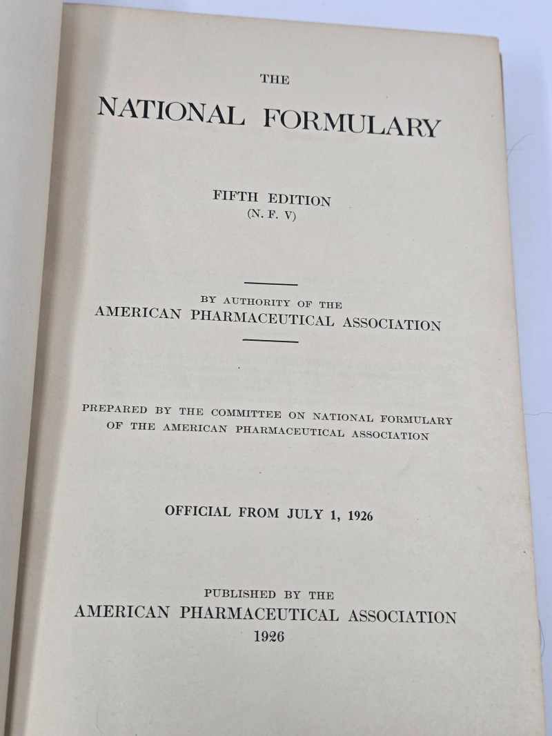 A comprehensive guide to personal health and hygiene, featuring embossed maroon boards with decorative flourishes. Designed for household reference, this volume captures the tone and priorities of turn-of-the-century wellness literature. The National Formulary – Fifth Edition (1926)