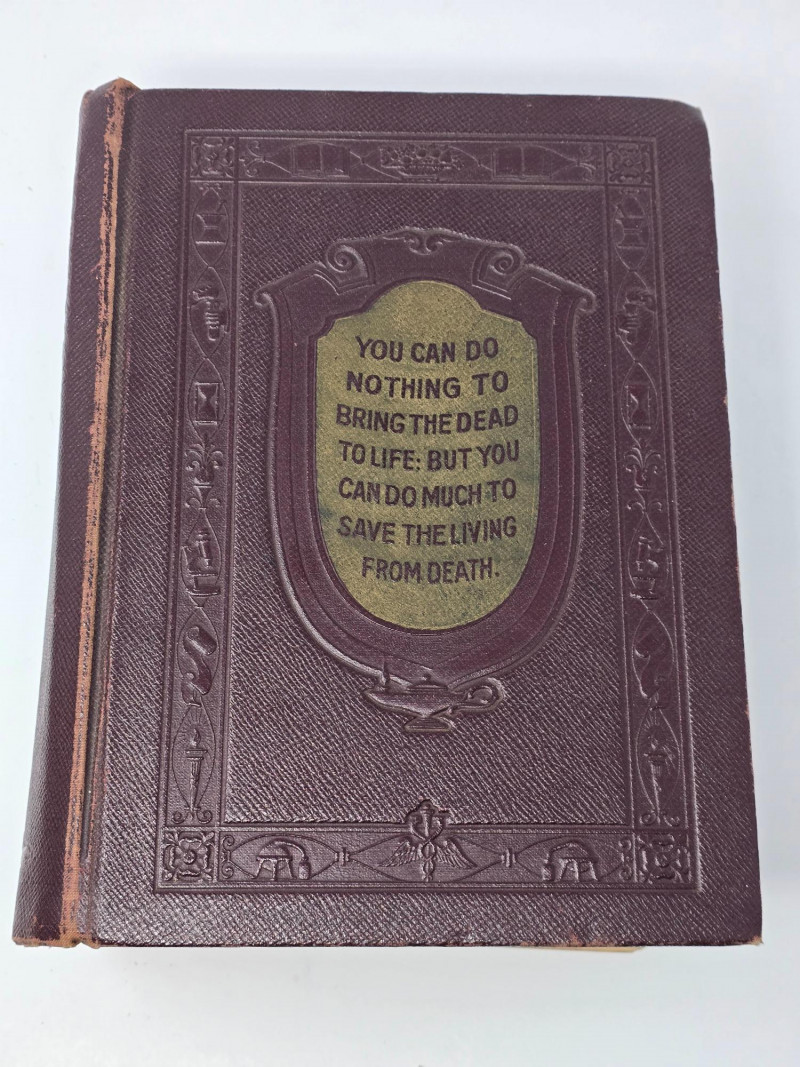 A widely circulated guide to self-care and medical advice, first published in the late 19th century and updated into the early 20th. This edition features black cloth boards with silver embossed text and emblem. Known for its blend of medical instruction and promotional content. Condition Notes: All volumes show moderate shelf wear, including edge rubbing, spine fading, and scattered foxing. Bindings are sound; pages are complete and legible. Decorative covers and embossed titles retain strong visual presence. Provenance: