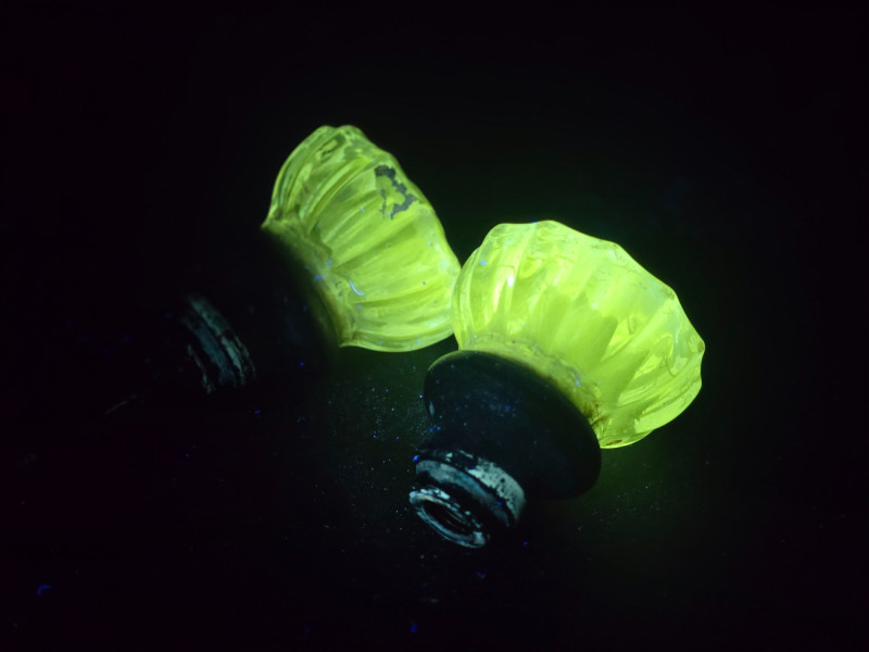 Elevate your space with this striking antique door handle from the Art Deco era, featuring a rare UV-reactive finish. Under blacklight, the handle glows a vivid green—an eye-catching detail that blends vintage charm with a touch of the unexpected. Era: Authentic Art Deco, circa 1920s–1930s Material: Metal with UV-reactive coating on handle Color: Classic finish with brilliant green glow under UV light Condition: Excellent antique condition with patina & wear consistent with age Features: Glows under blacklight; ideal for period restorations, steampunk décor, or theatrical design Use: Interior or exterior door; mounting hardware not included A rare find for collectors, designers, or anyone restoring a historic space with flair. Ships securely and ready for display or installation.