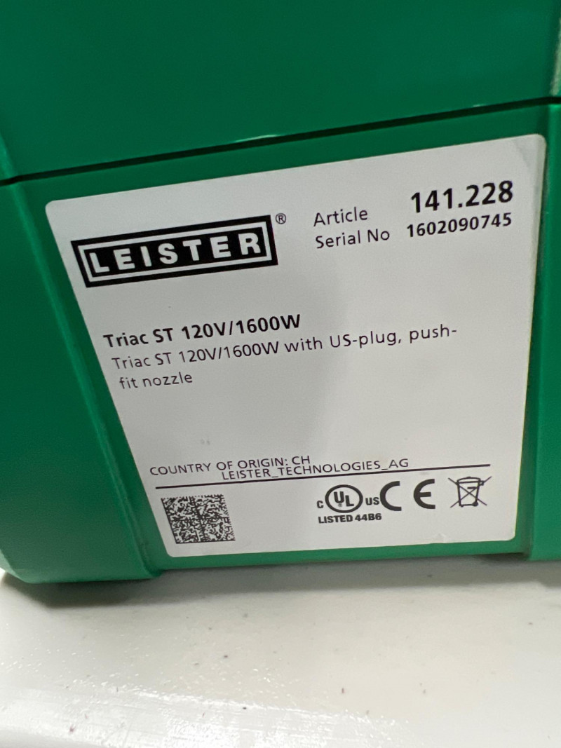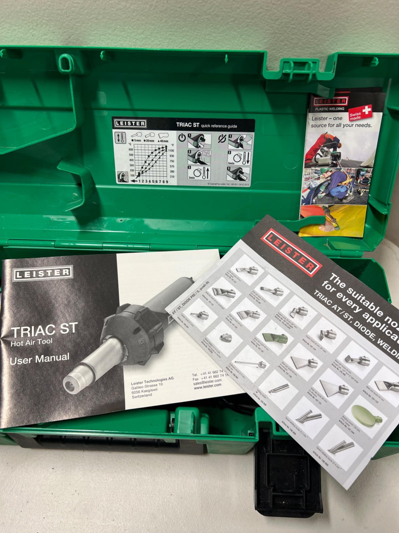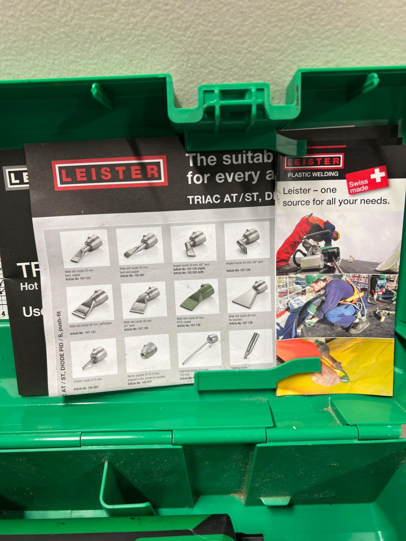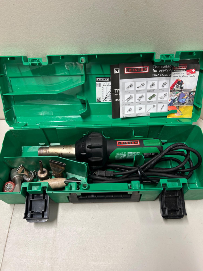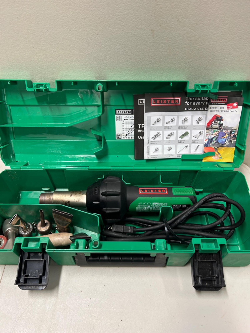 Swiss-made and built for precision, this Leister hot air tool delivers reliable, adjustable heat for roofing, flooring, and plastic welding applications. Ideal for professionals who demand control and consistency, it’s a compact powerhouse trusted across trades. Whether you're sealing seams or shaping thermoplastics, this tool brings the heat—exactly where you need it. Tool is used. Manufacturer: Leister (Switzerland) Function: Hot air welding / heat gun Applications: Roofing, vinyl, tarps, flooring, plastic fabrication Includes: Tool, tips and original case (with U.S. plug) Need Shipping?: Contact LoopCycle